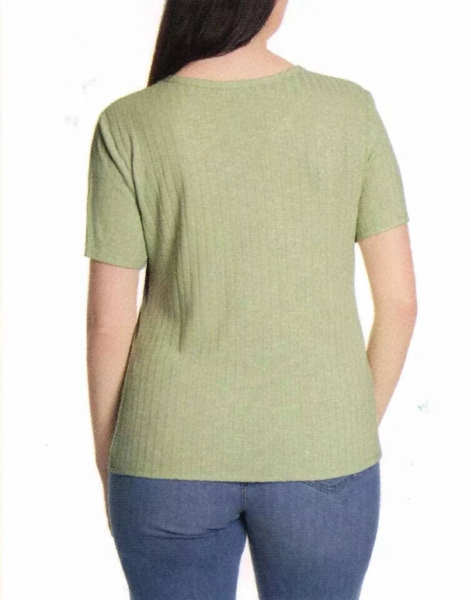 Look no further, you just found your perfect tee! Discover the American Vintage Ribbed Tee, a timeless piece perfect for any travel or casual occasion. Designed in a breathable and lightweight composition of Viscose, Polyester, Spandex, and Rayon, this green T-shirt features a comfortable short sleeve and crewneck style. Closure: Pull-on. Care: Machine washable. Perfect for all seasons, this tee ensures effortless style with its regular fit.