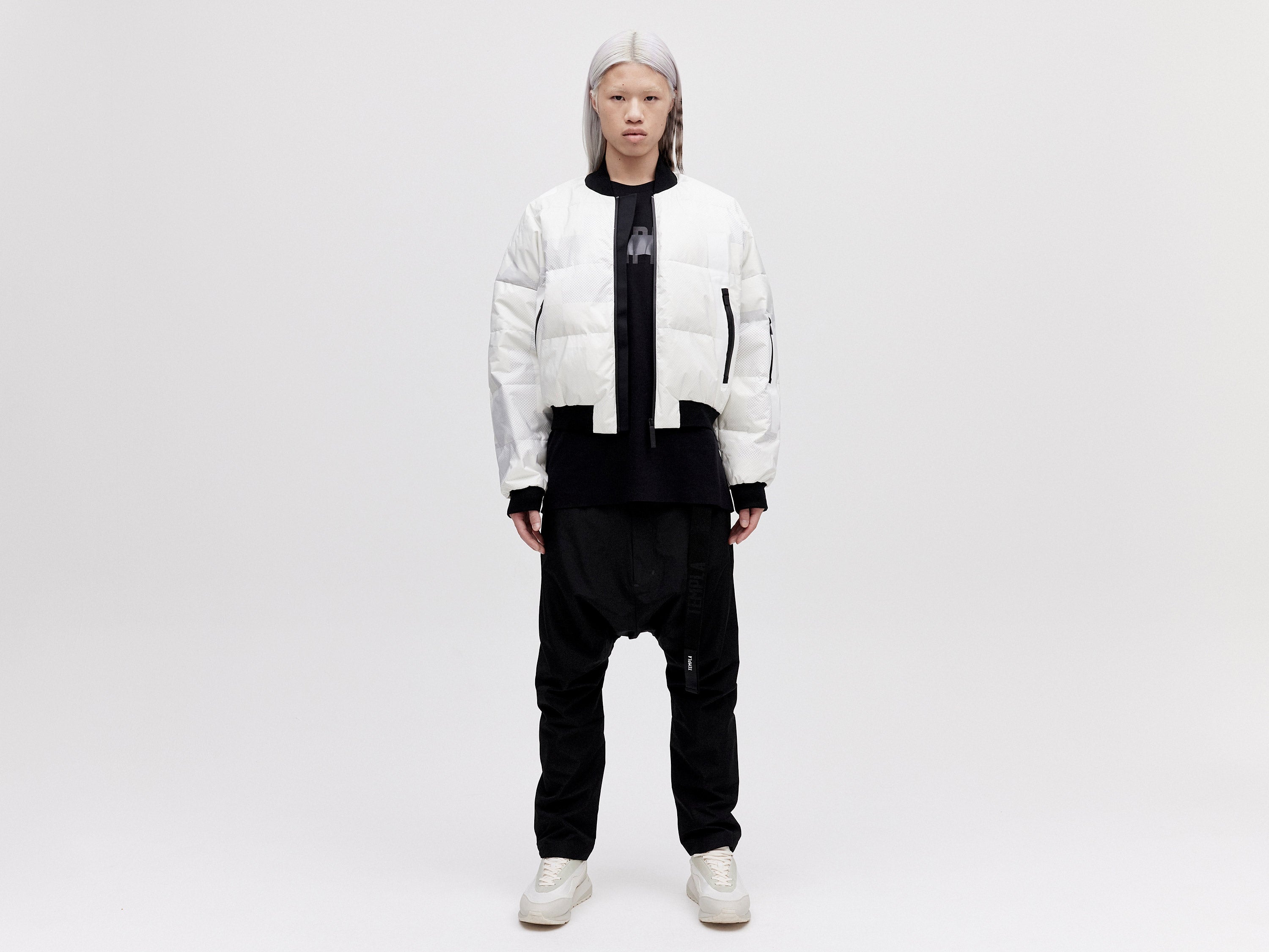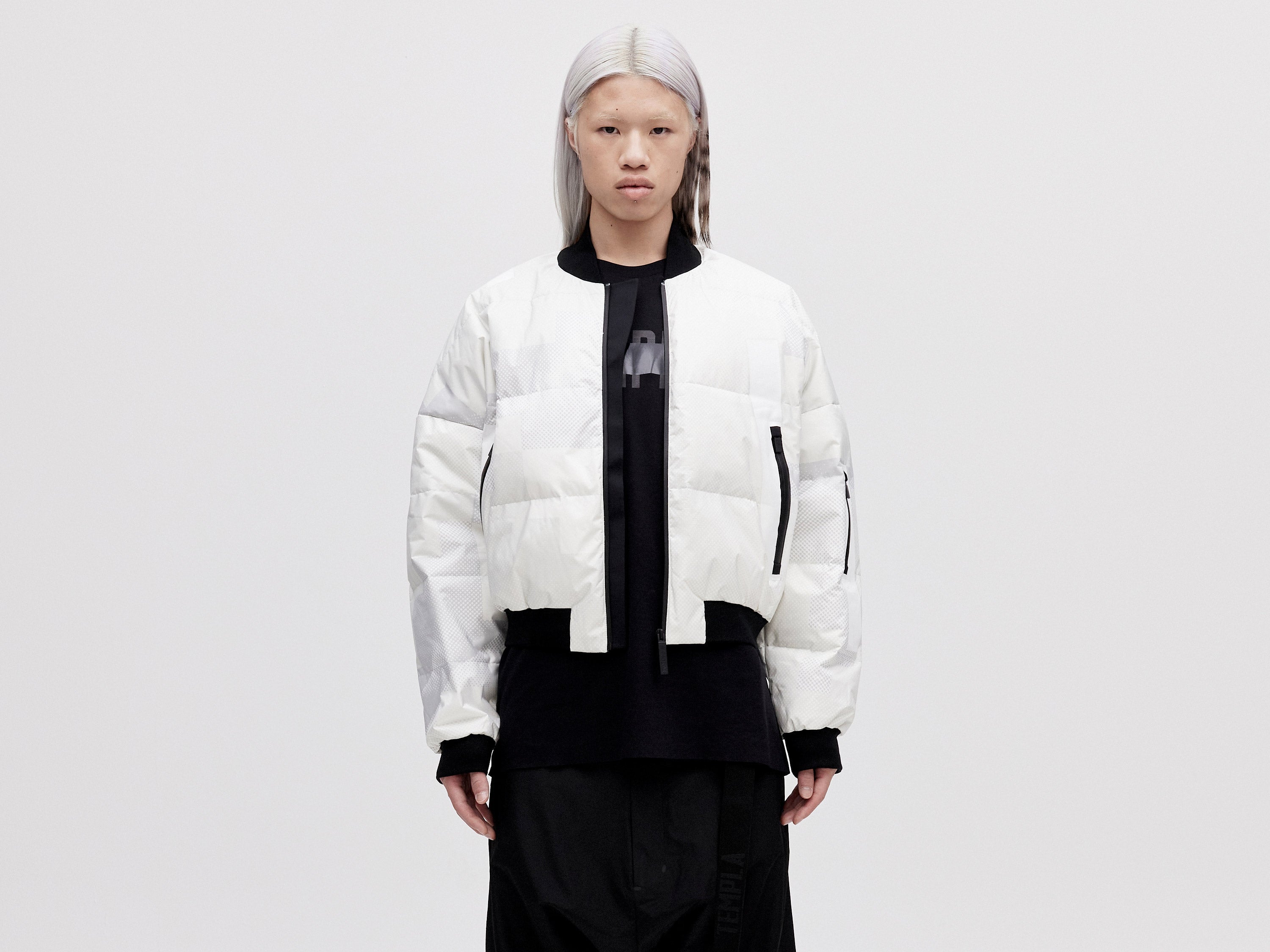 Our Bomber Down Jacket combines functional design with a contemporary silhouette. It's made from a lightweight, weatherproof shell that's padded with premium white goose down. Ribbed-knit cuffs lock in heat for optimal insulation.
