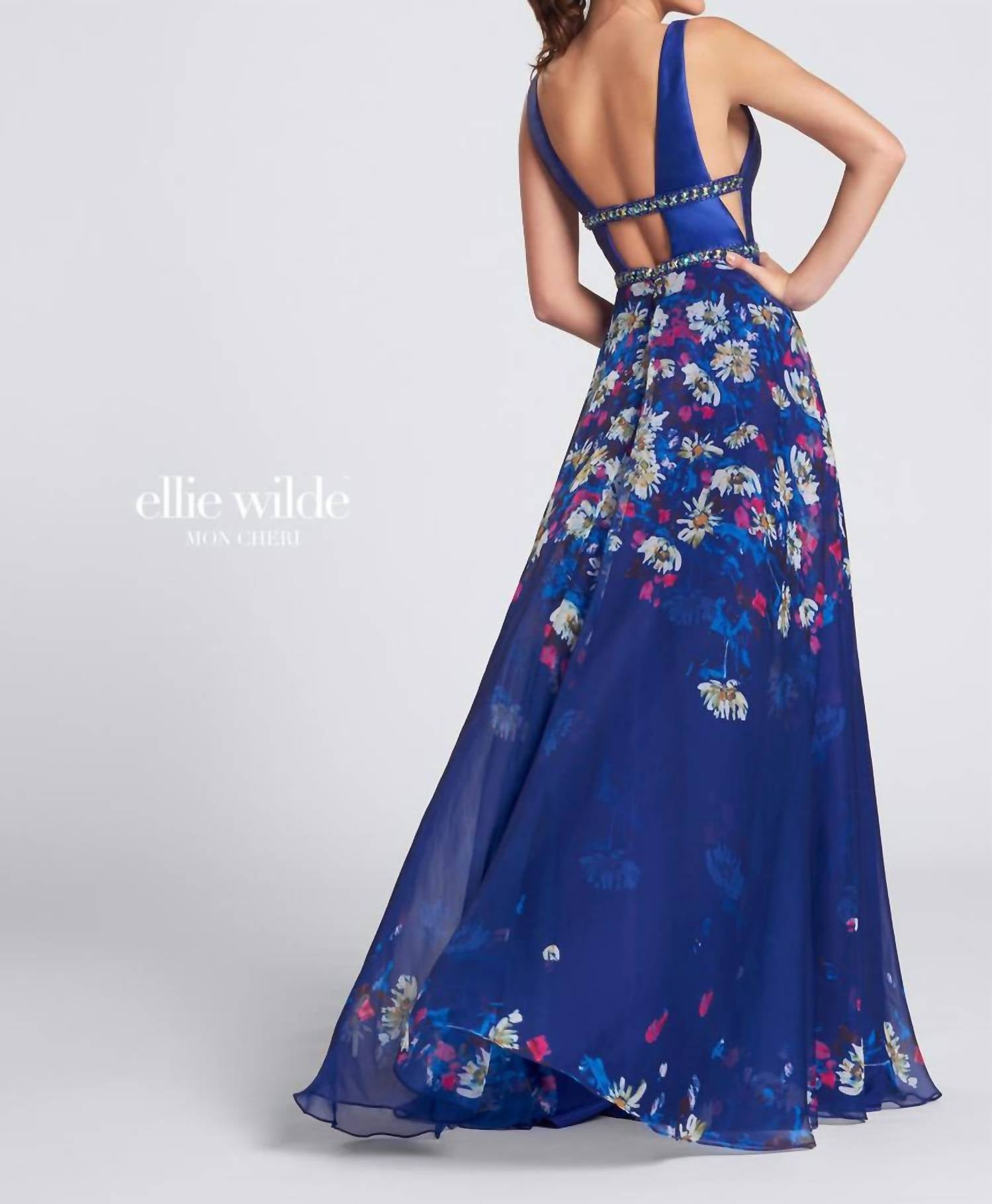 Looking for that perfect event dress? Look no further... Presenting the Women's Prom Dress by Ellie Wilde in a stunning Royal Blue Multi color, designed with an elegant floral pattern perfect for a memorable spring prom night. This A-line silhouette dress features a captivating sweetheart neckline and a trendy sleeveless design that embodies the essence of quiet luxury. Ideal for women who appreciate a mix of classic and contemporary styles, this dress promises to make you the center of attention. Please note that care and closure instructions are not specified.