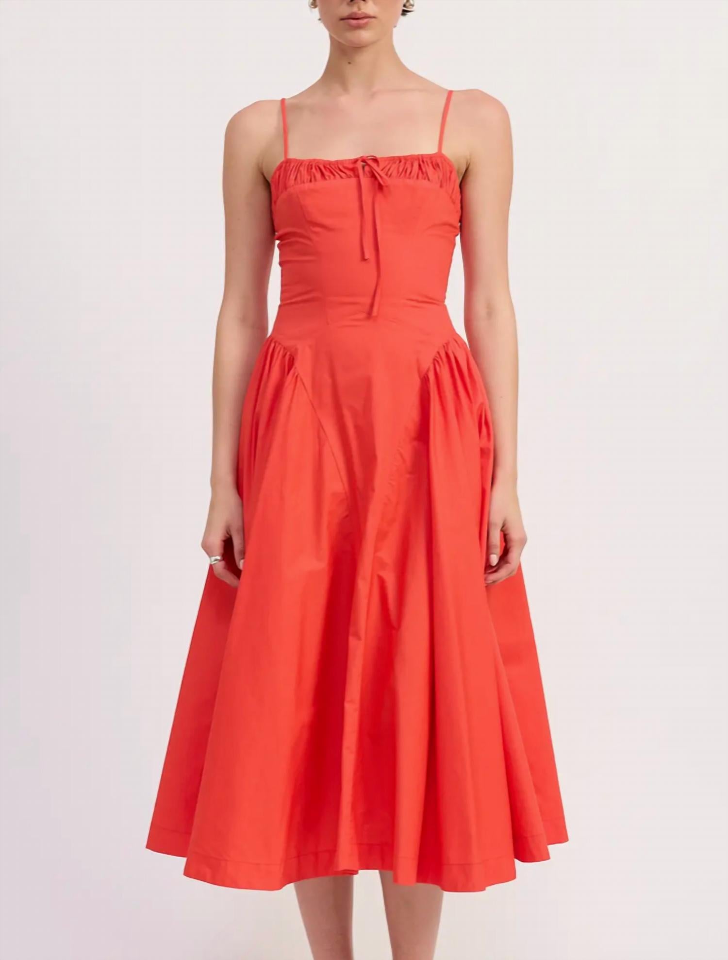A midi dress so versatile, your options for wearing it are endless. Discover the Corset Bustier Midi Dress by Emory Park, a sophisticated piece defined by its feminine flow and romantic edge. Designed with spaghetti straps, this white A-line dress features a corset-style bustier bodice that beautifully enhances the silhouette. Complete with a zip closure, it offers a flattering fit with delicate details, ideal for special occasions. Composition and care: hand wash only, laying flat to dry to maintain its elegant structure.