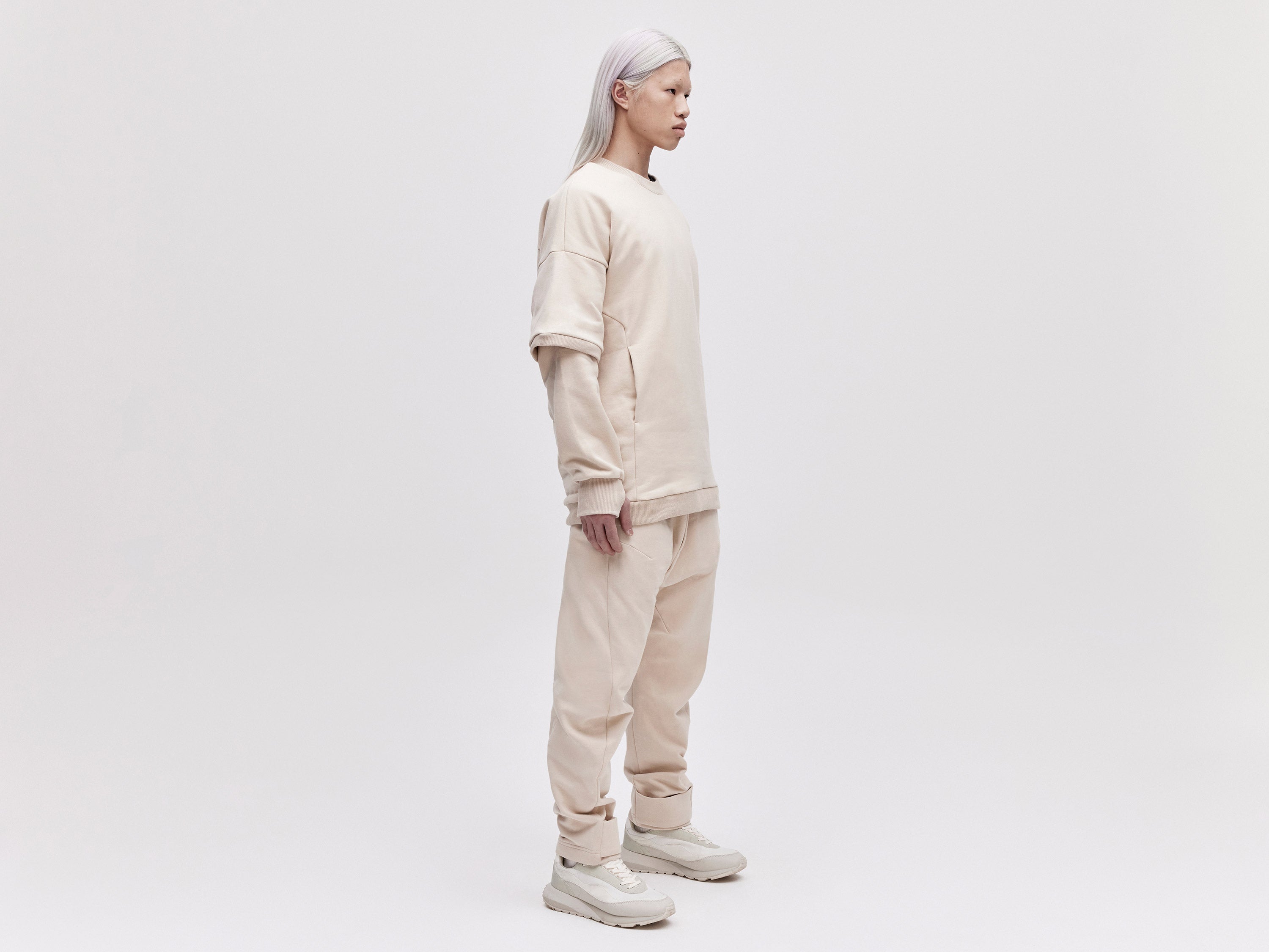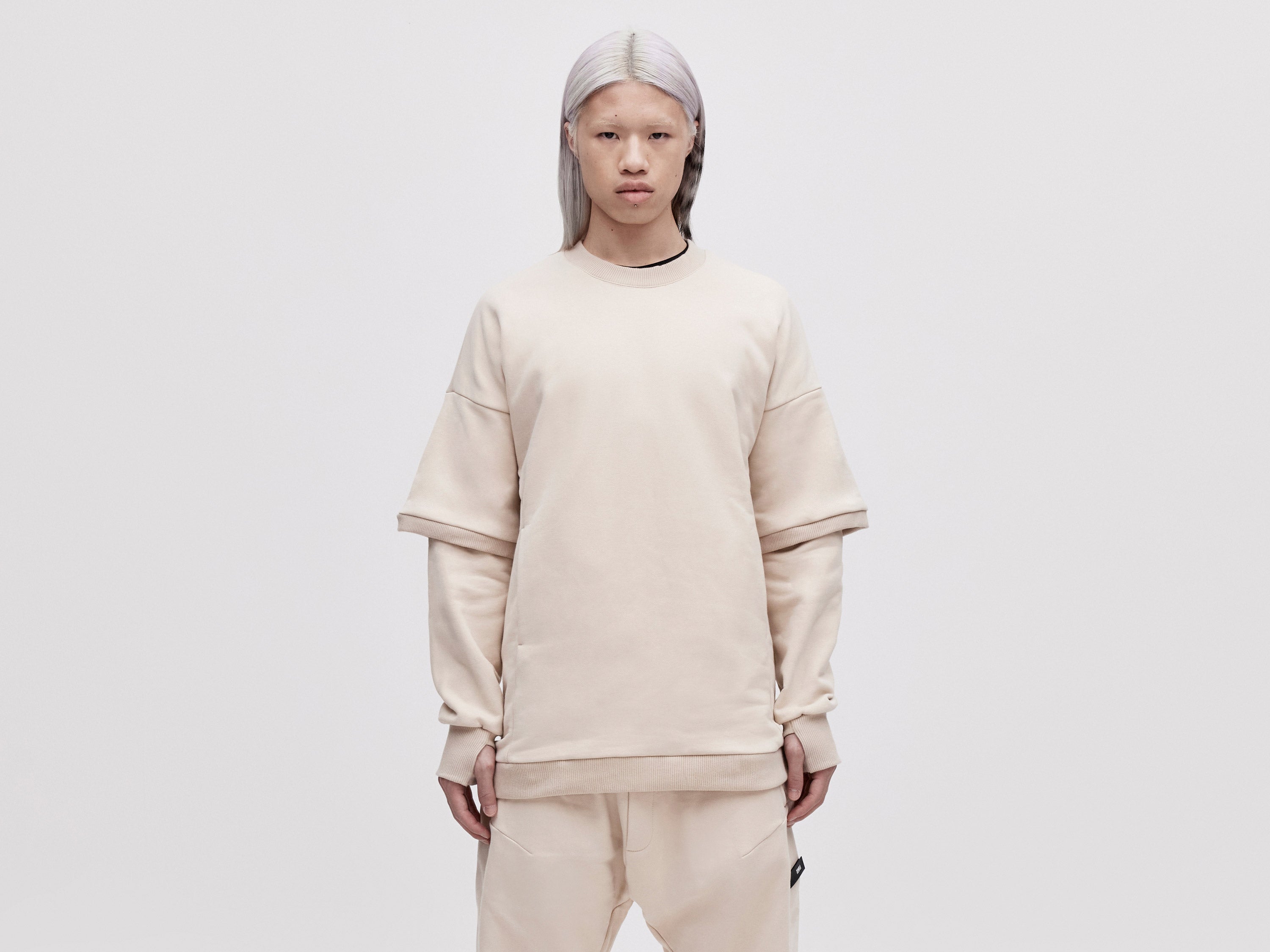 Cut from super soft Italian organic cotton fleece and framed with ribbing, our Layered Sweater is designed for an understated style. With its layered double sleeve, crew neckline, front pockets and ribbed thumbholes, it's a hassle-free classic that is minimal with subtle details.