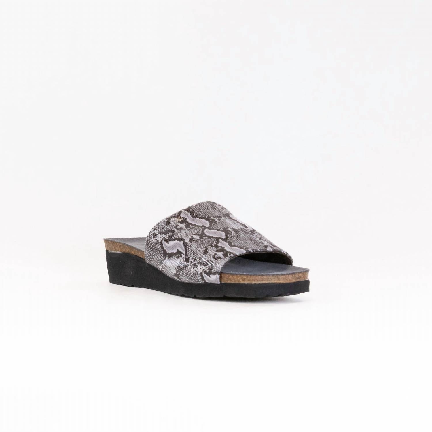 Step into summer with the Women's Alana Sandals by NAOT, expertly crafted for both comfort and style. These sandals feature a classic slide-on design with a stretch upper that ensures accessibility and a perfect fit. The anatomic cork and latex footbed, wrapped in pampering suede, adapts to your foot shape over time, while the 1.5-inch EVA sole provides comfort. Ideal for vacation wear, the Alana is APMA accepted for promoting good foot health and is finished in a versatile black and white color, suitable for narrow to medium widths.