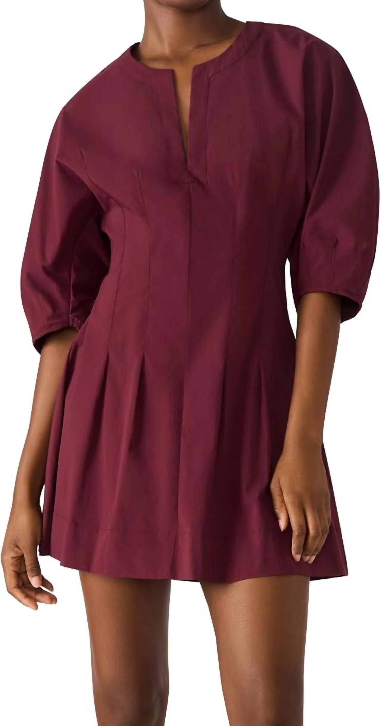 The Steve Madden Dayton Mini Dress in a sultry wine hue is a must-have for your summer dinner parties. This A-line silhouette features a chic V-neck and elegant elbow-length sleeves for a minimalist yet sophisticated look. Crafted from 96% Polyamide and 4% Elastane, it ensures comfort and style, secured with a zip closure. For lasting quality, please remember to hand wash only.