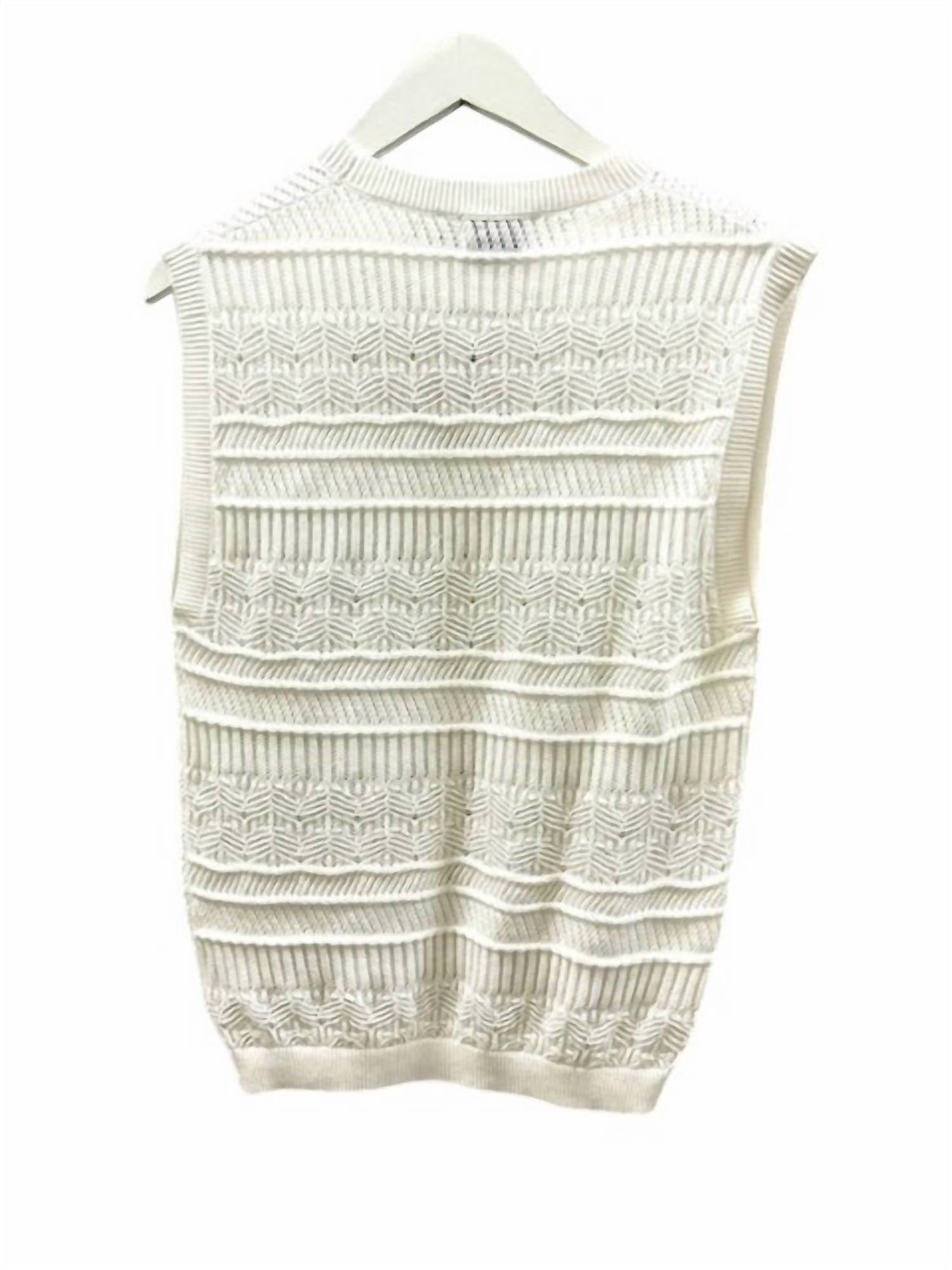 This classic sweater vest features stitch detailing for a refined touch and a ribbed crewneck, armholes, and hem for added texture. Made from 100% cotton, it offers both comfort and breathability. The fit is straight and true to size, with the model wearing a size small. The body length measures 23 inches for a flattering silhouette. For care, hand wash cold or dry clean only to maintain its quality.