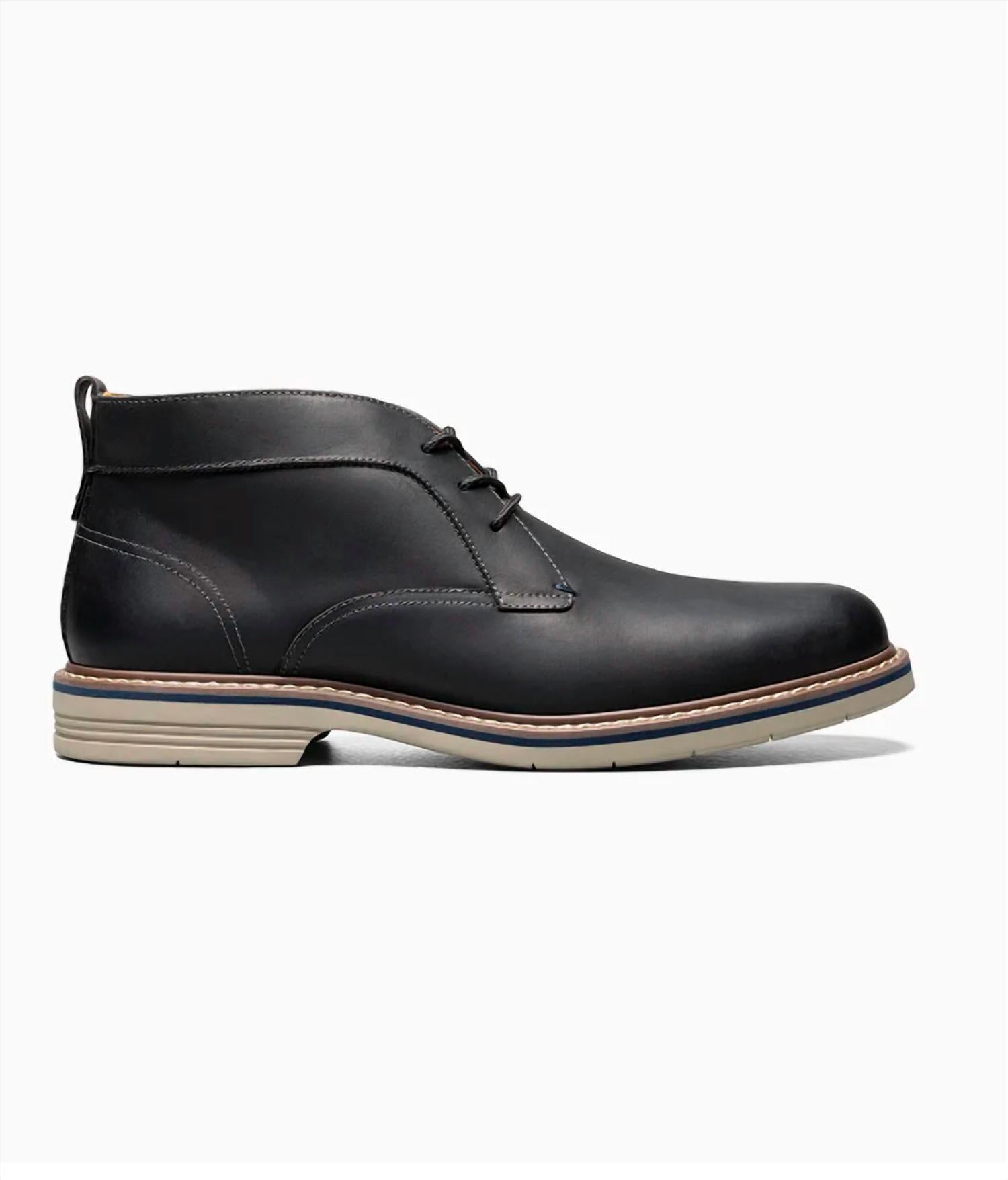 Step out in style with the Florsheim Men's Norwalk Plain Toe Chukka Boot, an elegant choice for any fall occasion. Crafted from richly burnished leather, this boot combines a modern profile with unbeatable comfort, thanks to its soft Suedetec linings and Comfortech footbed with molded EVA. The flexible TPU midsole and a durable lightweight TPU outsole with Flexsole Technology ensure all-day wearability. Ideal for medium-width feet, this almond-toe design features a flat heel, making it a perfect addition to your holiday party attire.
