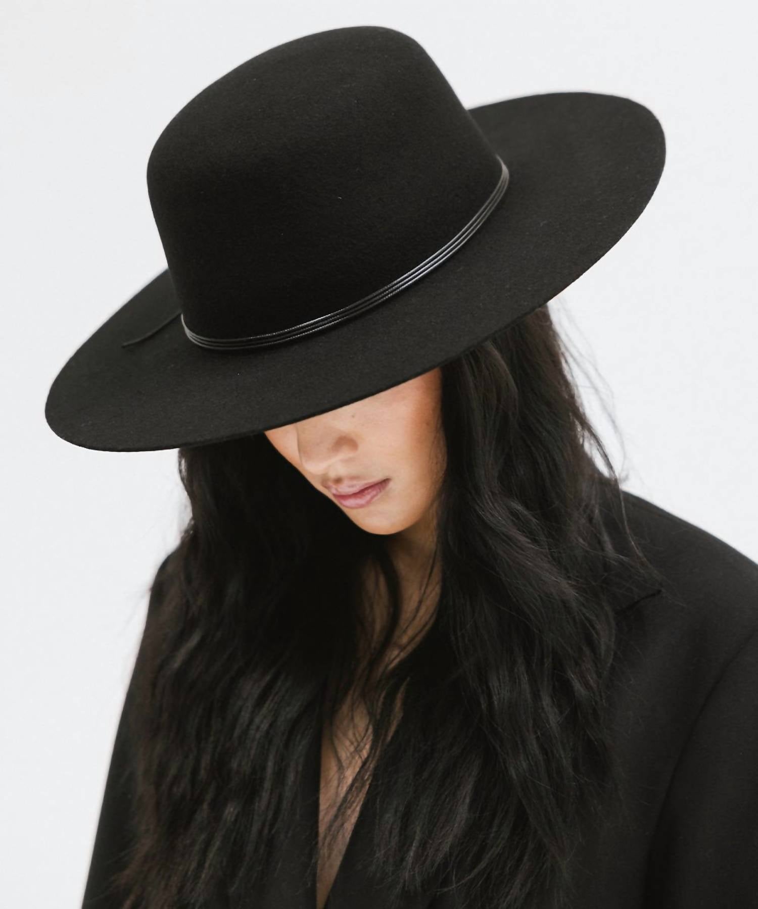 Turn heads in this stylish and chic hat. Not only is this accessory a must for keeping the sun out of your face, it will also be the perfect complement to any cute warm-weather outfit. Introducing the Women's Rue Open Crown Hat by Gigi Pip in an elegant hue, crafted to bring sophisticated style and unique craftsmanship to the forefront. This hat features a stiff, wide flat brim with a hand-stitched edge detail, accompanied by an open crown and a classic crown height. Made from 100% Australian wool, it includes a tonal adjustable triple-strand waxed leather band for added styling flexibility. Crown dimensions are 10 cm and brim dimensions are 9 cm, ensuring a polished and versatile fit, perfect for both elevated everyday wear and special occasions.