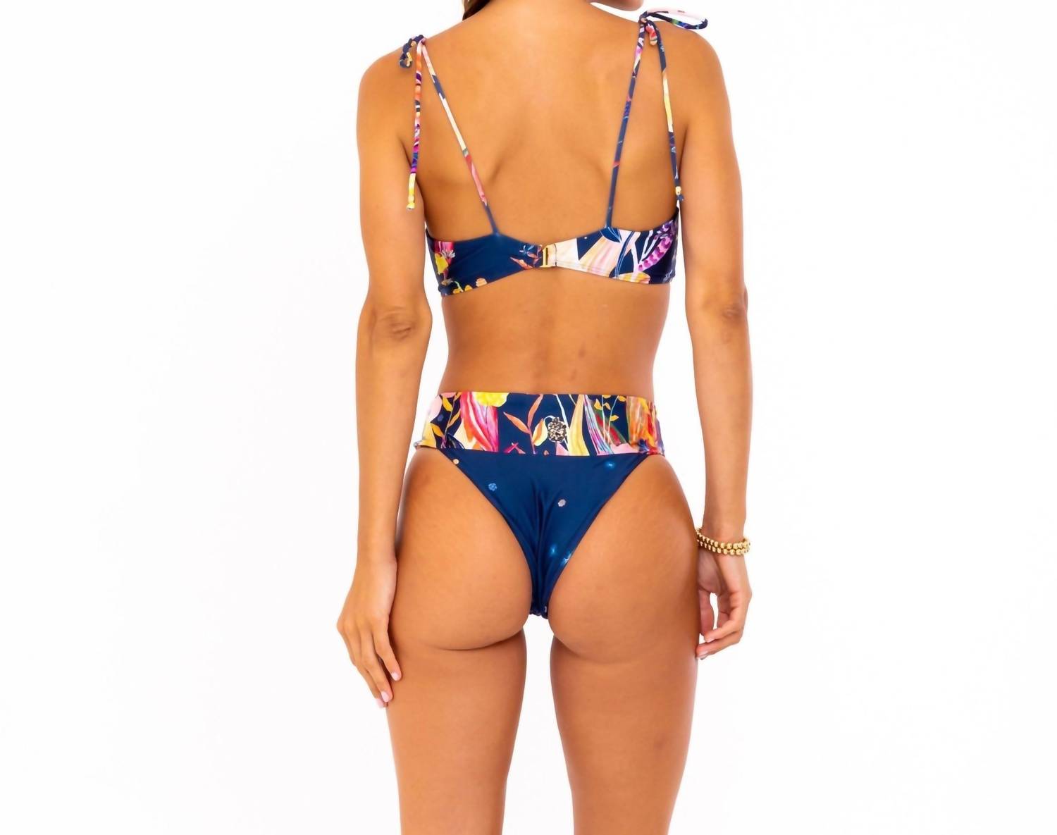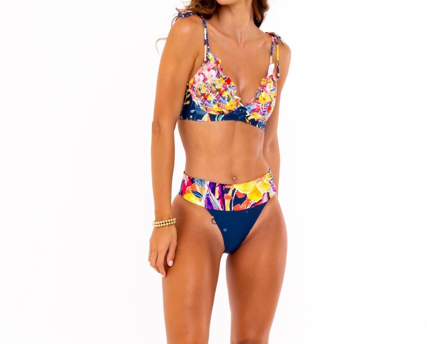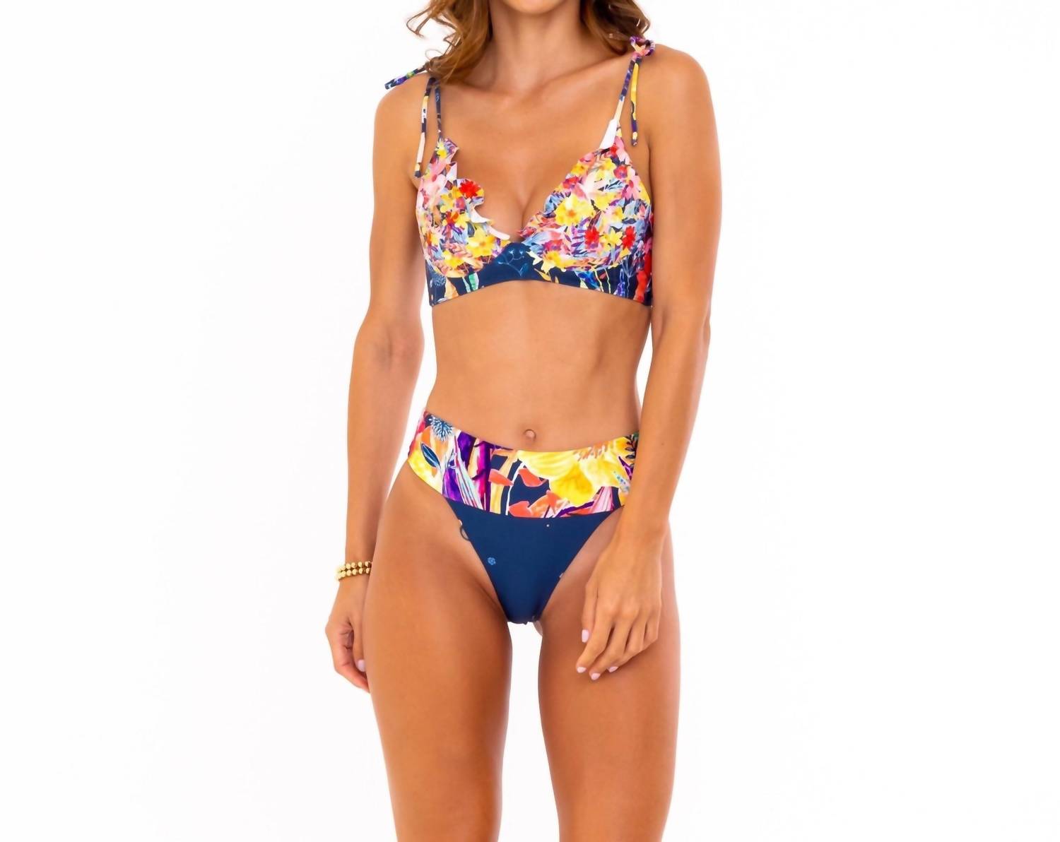 Ideal for relaxed poolside moments, this adorable swimsuit effortlessly transitions into the perfect sunset dinner outfit when paired with a flowing skirt. Discover the Women's Piper Bralette Bikini Top by SOAH, featuring adjustable shoulder ties and a flirty floral pattern. Crafted with slight underwire for push up and support, this swim top comes fully lined for added comfort. Made in the USA, it ensures quality and fit. Care is simple: hand wash cold. Model is a size small and wears a size Small. This item runs true to size.