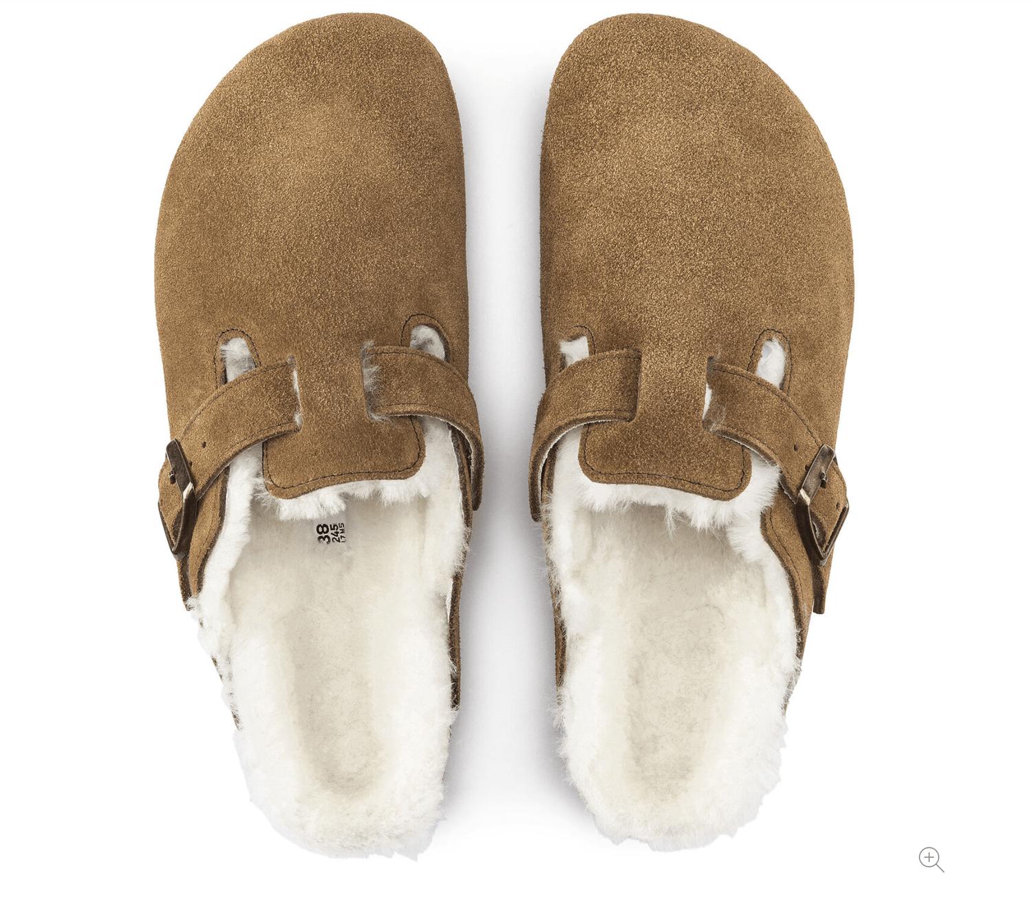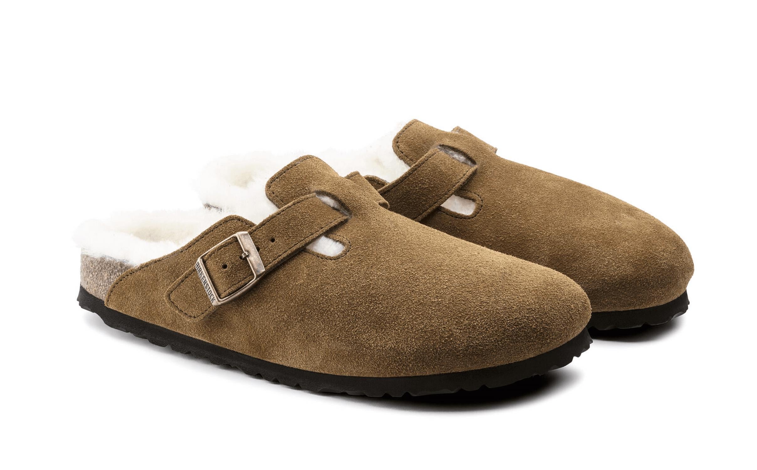Slip them on and go! Step into luxurious comfort with the Unisex Boston Fur Shearling Clog by BIRKENSTOCK, designed for those who embrace bold style. Crafted from high-quality suede in a sophisticated mink hue, this winter-ready shoe features a shearling footbed and strap lining for ultimate warmth. The clog showcases an anatomically formed cork and latex footbed and an EVA sole for lasting support. Made in Germany, this clog is completed with an individually adjustable metal pin buckle for a customized fit.