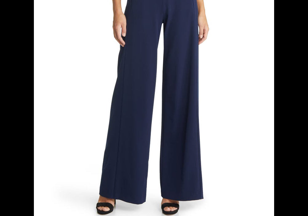 Sleek black color | Wide-leg design | Elegant Eclipse styling | Size 8 | Premium material construction | Comfortable fit | Top-quality stitch | Nordstrom exclusive | Strapless top | Concealed zipper closure | Waistband accent | Contemporary design | Ideal for formal occasions | Easy to accessorize