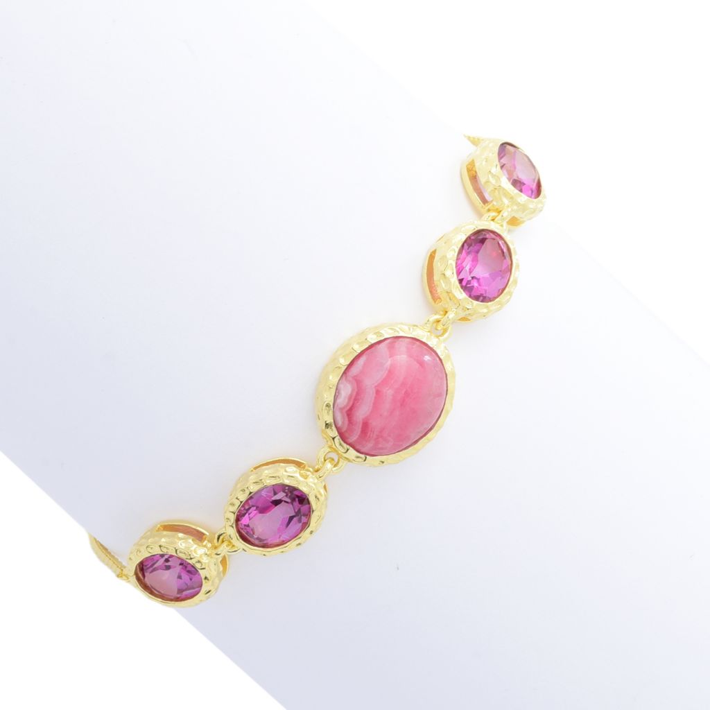 This stunning bracelet is meticulously set in sterling silver with options of 18K yellow gold or platinum plating. Each piece is uniquely designed to enhance the natural beauty of the stones, incorporating elements such as texturing and motifs.