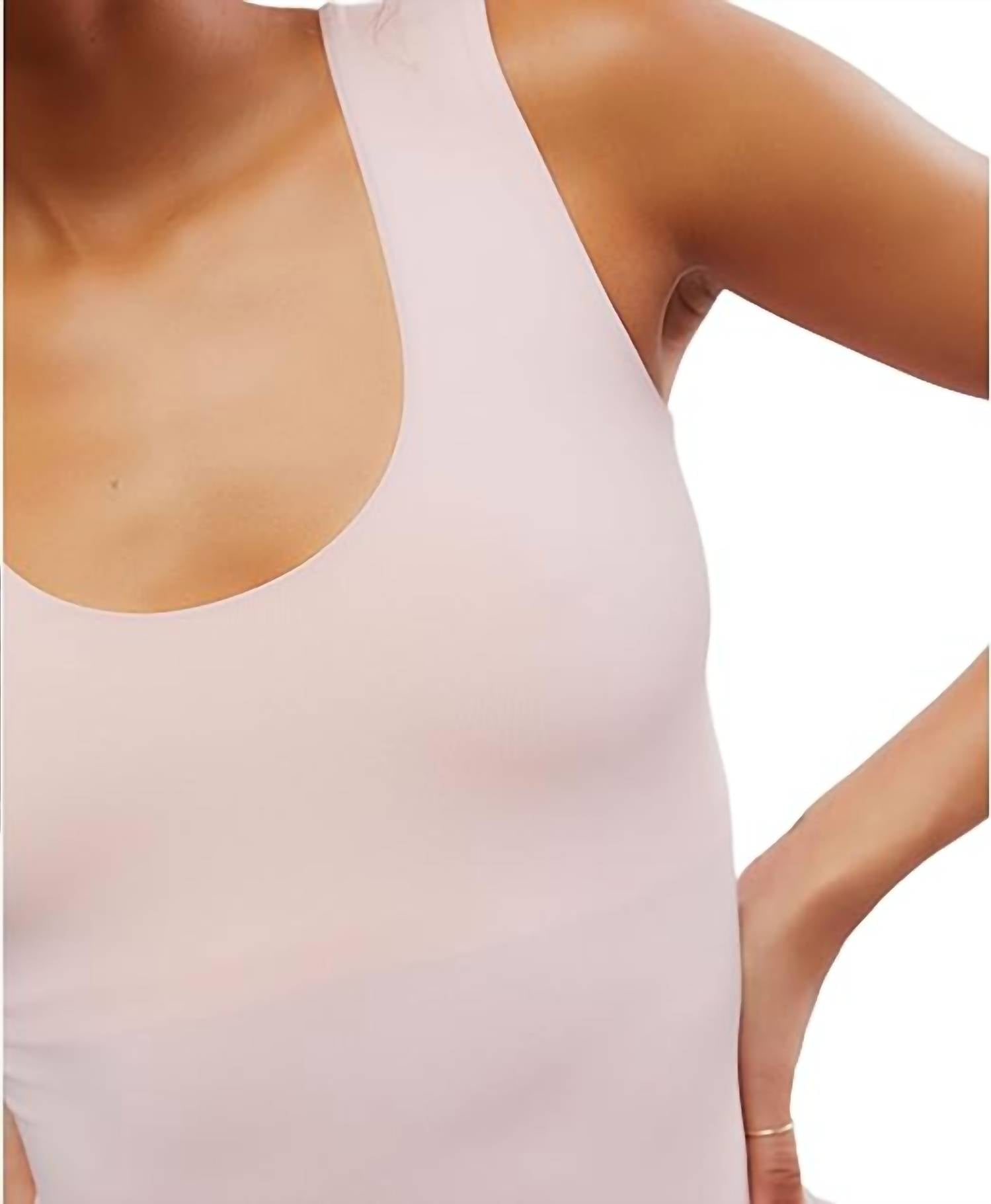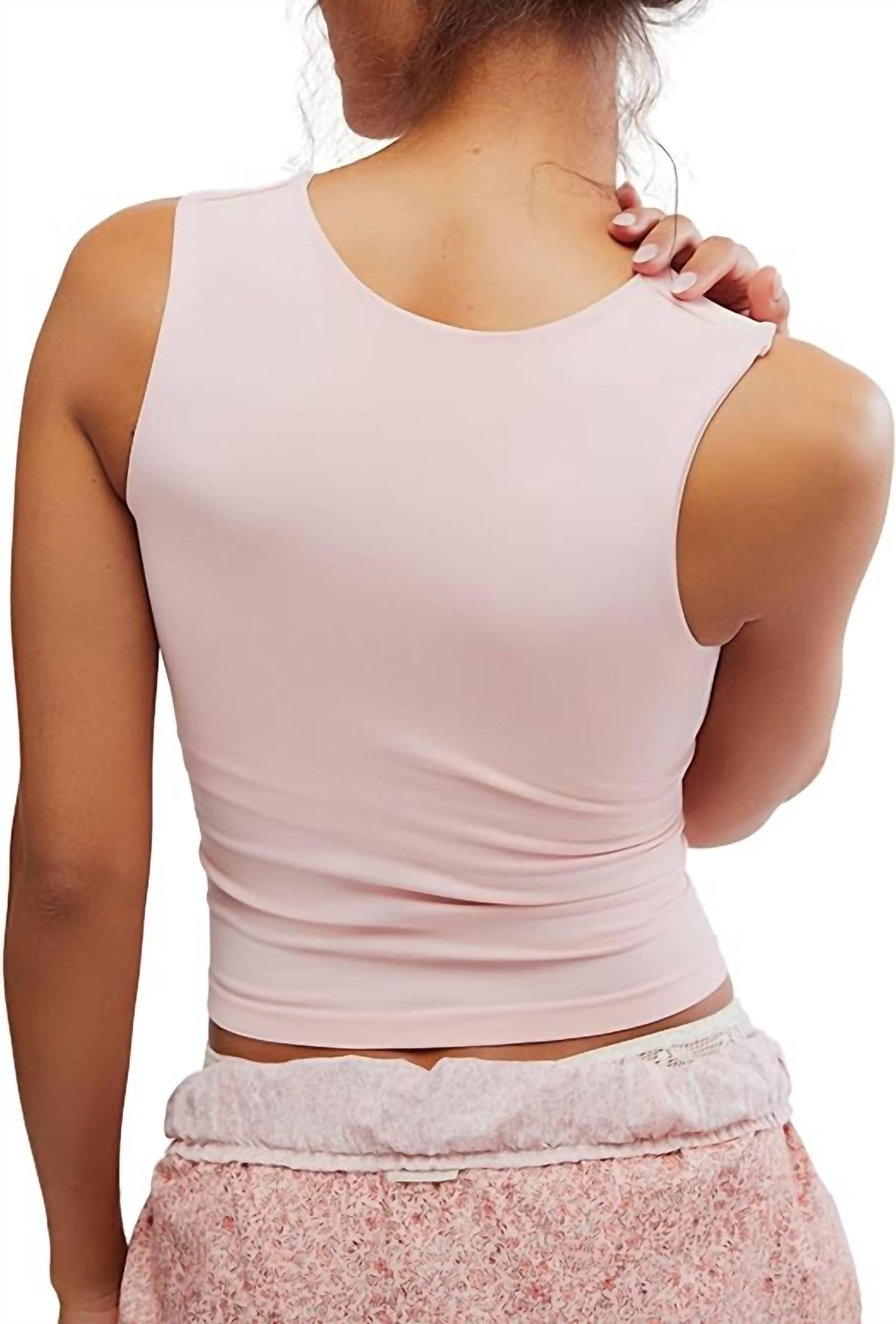 Clean lines muscle cami in pink salt. Sleek design for workout wardrobe. Comfortable fit suitable for gym sessions and casual outings. Versatile color. A must-have piece for style and comfort.