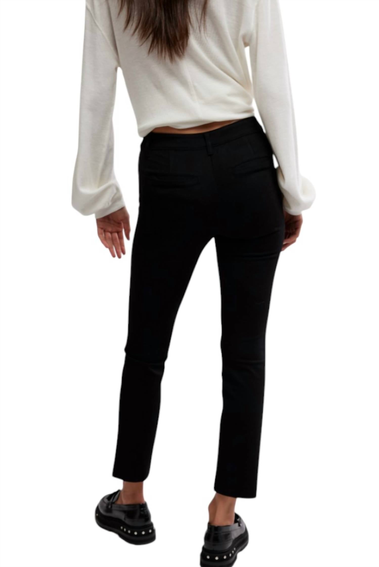 Discover the MOLLY SLIM PANT by Free People, designed for a sleek and stylish silhouette. These chic pants come in a classic black color and are crafted from quality polyester, ensuring a comfortable fit. Perfect for making a statement, they feature a high-rise waist and skinny leg for a flattering look. Functional with a button closure and pockets, they run small, so we recommend sizing up 1-2 sizes for the best fit.