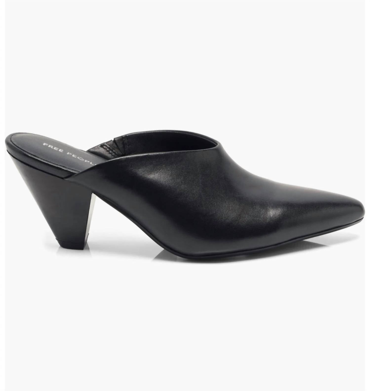 Pair these beauties with your favorite skinny jeans or dress for a night out on the town. Elevate your ensemble with the Women's Stellar Mule by Free People, a striking addition in Black Leather. These mules, featuring a chic pointed toe and a chunky cone heel, are designed to seamlessly complement any work or play outfit. Crafted from 100% leather and featuring a slip-on style with a sturdy rubber outsole, these shoes offer both elegance and practicality. Perfect for graduation or Thanksgiving, and embodying a minimalist fall trend, they're a vintage-inspired staple with modern flair.