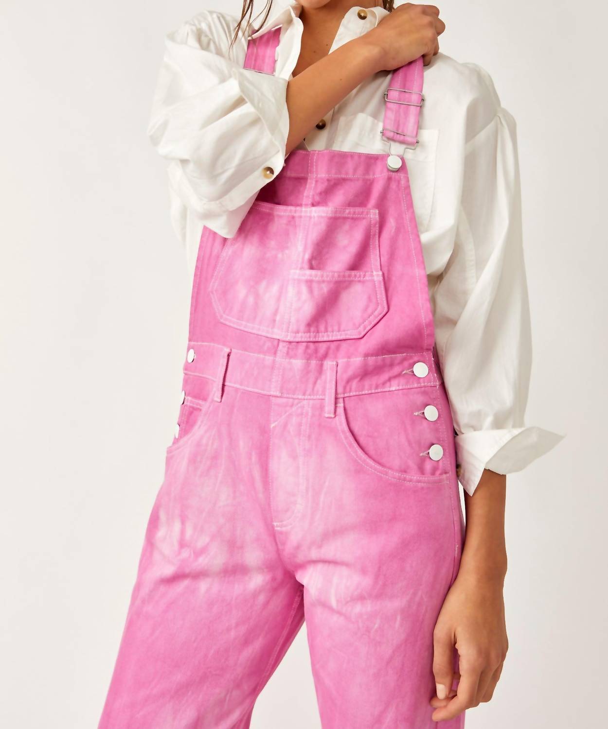 Introducing the Ziggy Denim Overalls by Free People, a charming blend of style and comfort in an Electric Bouquet hue. Crafted from cotton, these overalls feature a classic bib-and-brace silhouette with adjustable straps and a relaxed fit, complete with a side button closure and five-pocket design. They have a straight leg style with a 5.5-inch inseam, 34-inch waist, and 43-inch hips for a flattering fit. Care: Machine wash cold.