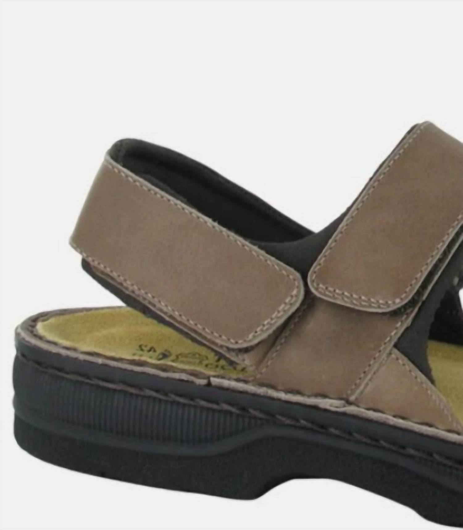 Step into comfort and style with the Arthur Sandal by NAOT, showcased in sophisticated Bark Nubuck leather. Featuring fully adjustable backstrap with three hook & loop closures, this sandal offers a personalized fit. It houses Naot’s removable, anatomic cork & latex footbed wrapped in suede, delivering ultimate comfort by molding to your foot’s shape. With a lightweight, 1.5" polyurethane sole that is durable and slip-resistant, this sandal is both orthotic friendly and promotes good foot health. Enjoy a perfect fit true to size, and know half sizes should size up. Ideal for travel or workwear, it's your go-to summer staple.
