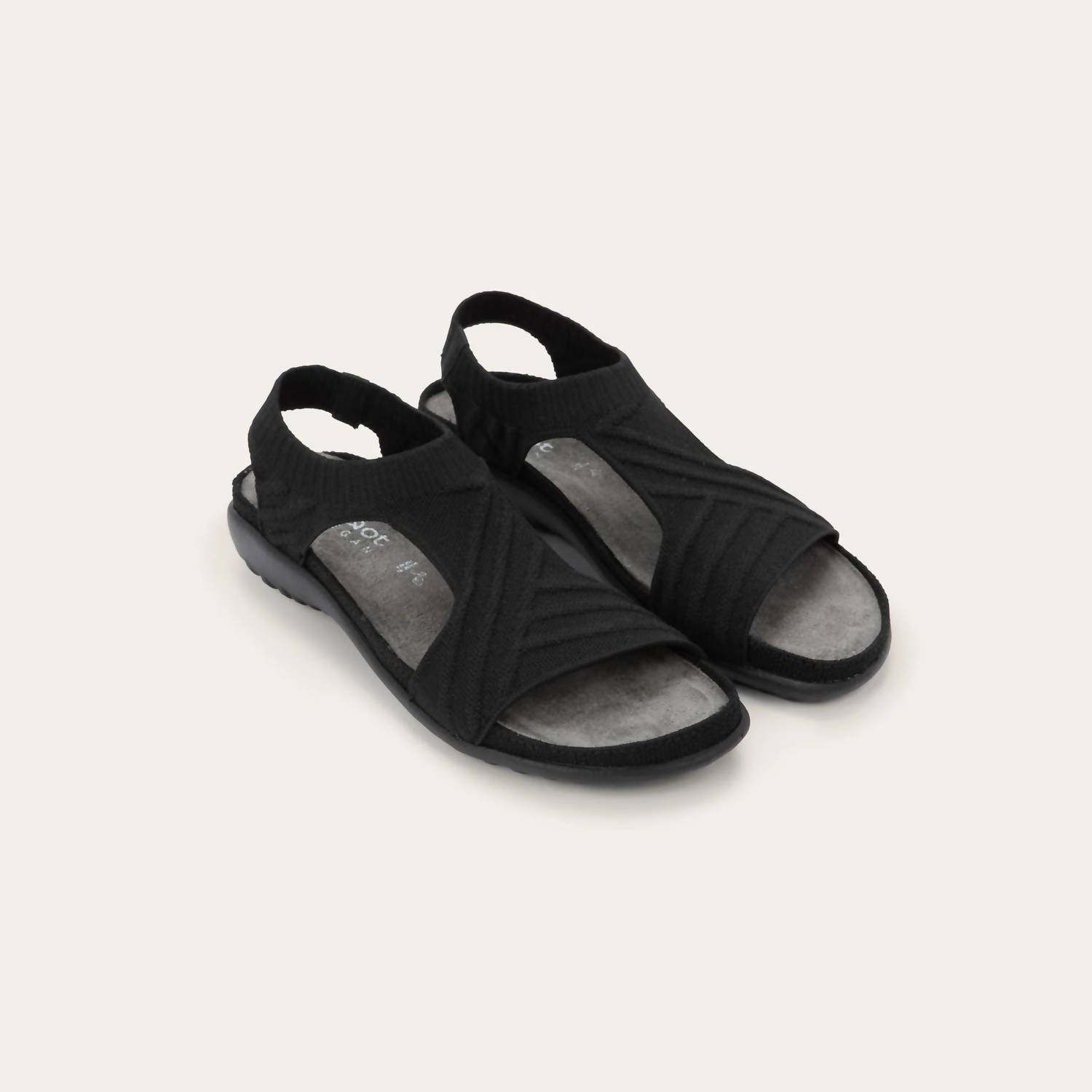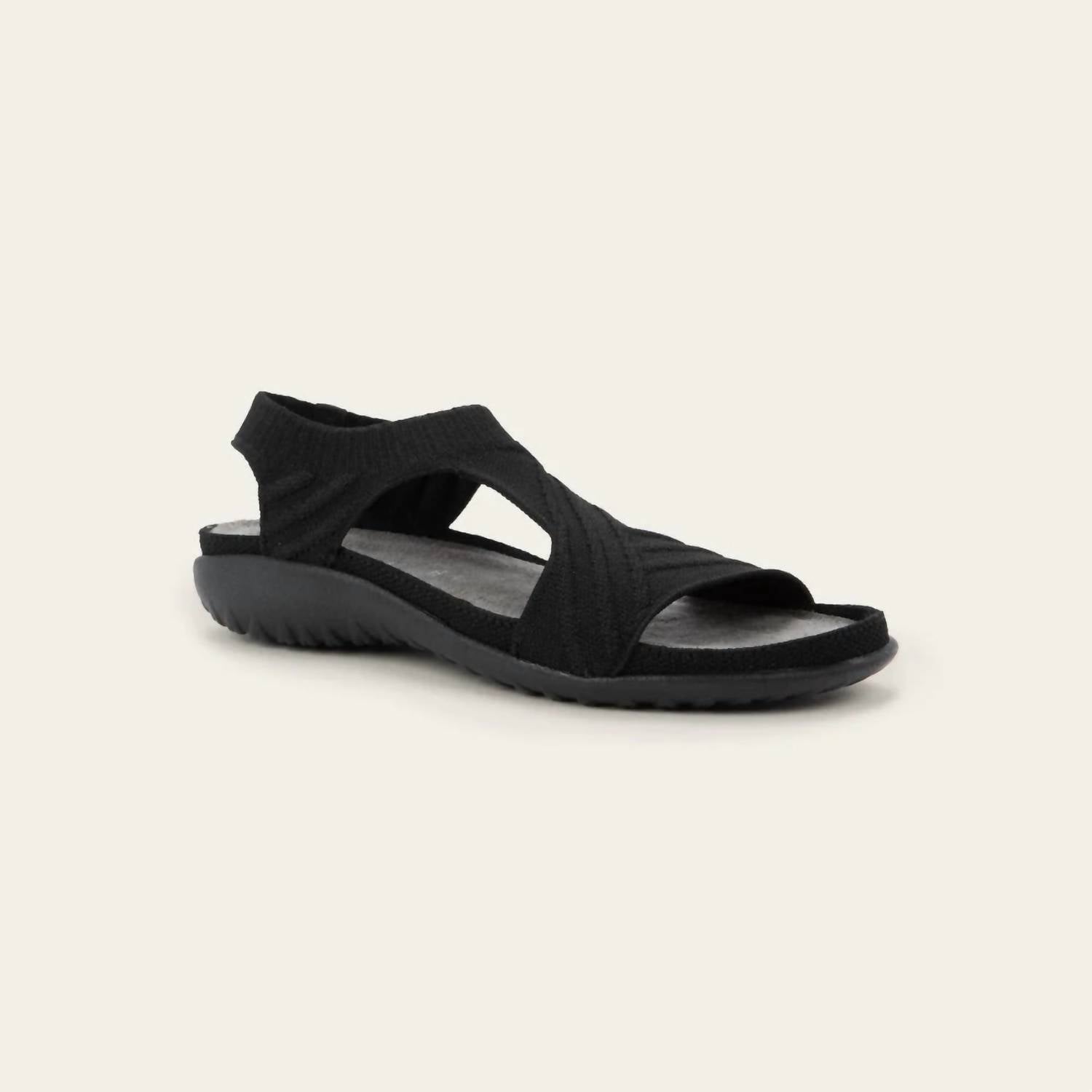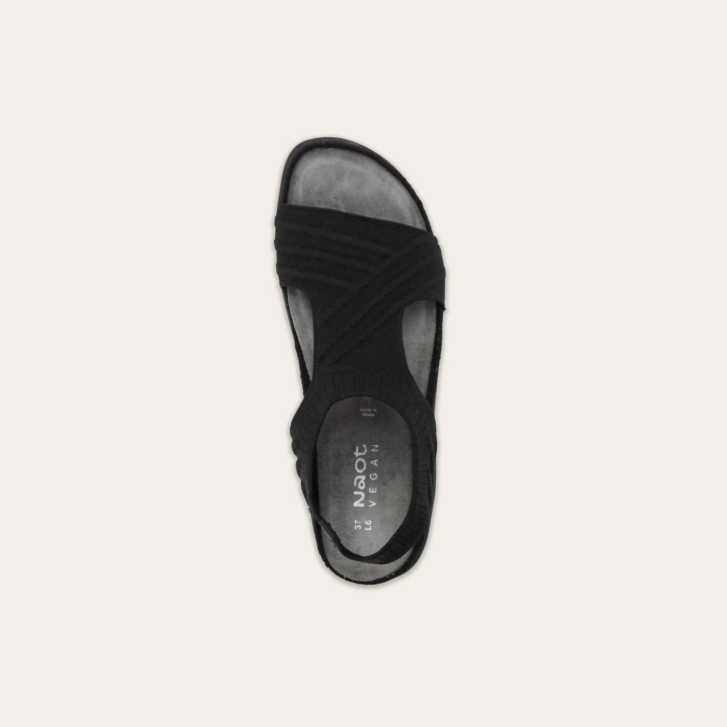 This sandal will take you from brunch to dinner and everything in between. Introducing the Women's Kawhia Sandals by NAOT, a seamless blend of comfort and sustainable style. Crafted from breathable vegan knit, these black slip-on sandals feature a 1" polyurethane sole that is lightweight, durable, and slip-resistant. They come with Naot's removable, anatomic cork & latex footbed wrapped in suede, ensuring personalized comfort with wear. Designed for medium width with an open toe design, these eco-friendly sandals are perfect for casual outings and summer vacations, embodying the essence of streetwear chic.
