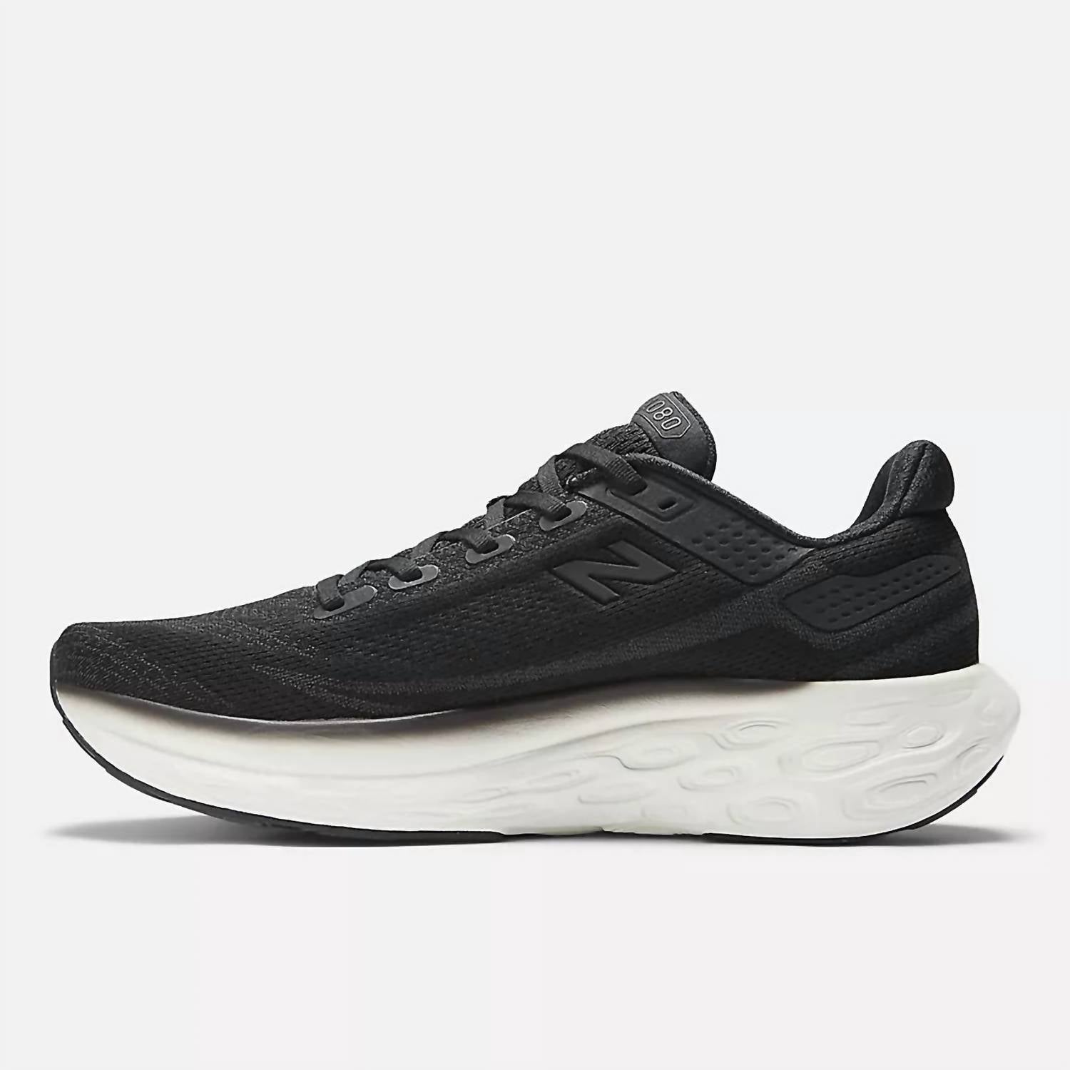 Elevate your running experience with the Men's Fresh Foam X 1080v13 Running Shoes by New Balance, crafted for both everyday and race-day performance. These athletic shoes in sleek black and white feature Fresh Foam X midsole cushioning with approximately 3% bio-based content, ensuring superior comfort and reducing environmental impact. Designed with a breathable mesh upper for support, they include Ndurance rubber outsole for enhanced durability in high-wear areas. Reflective accents add a stylish touch, ideal for fitness and athleisure occasions.