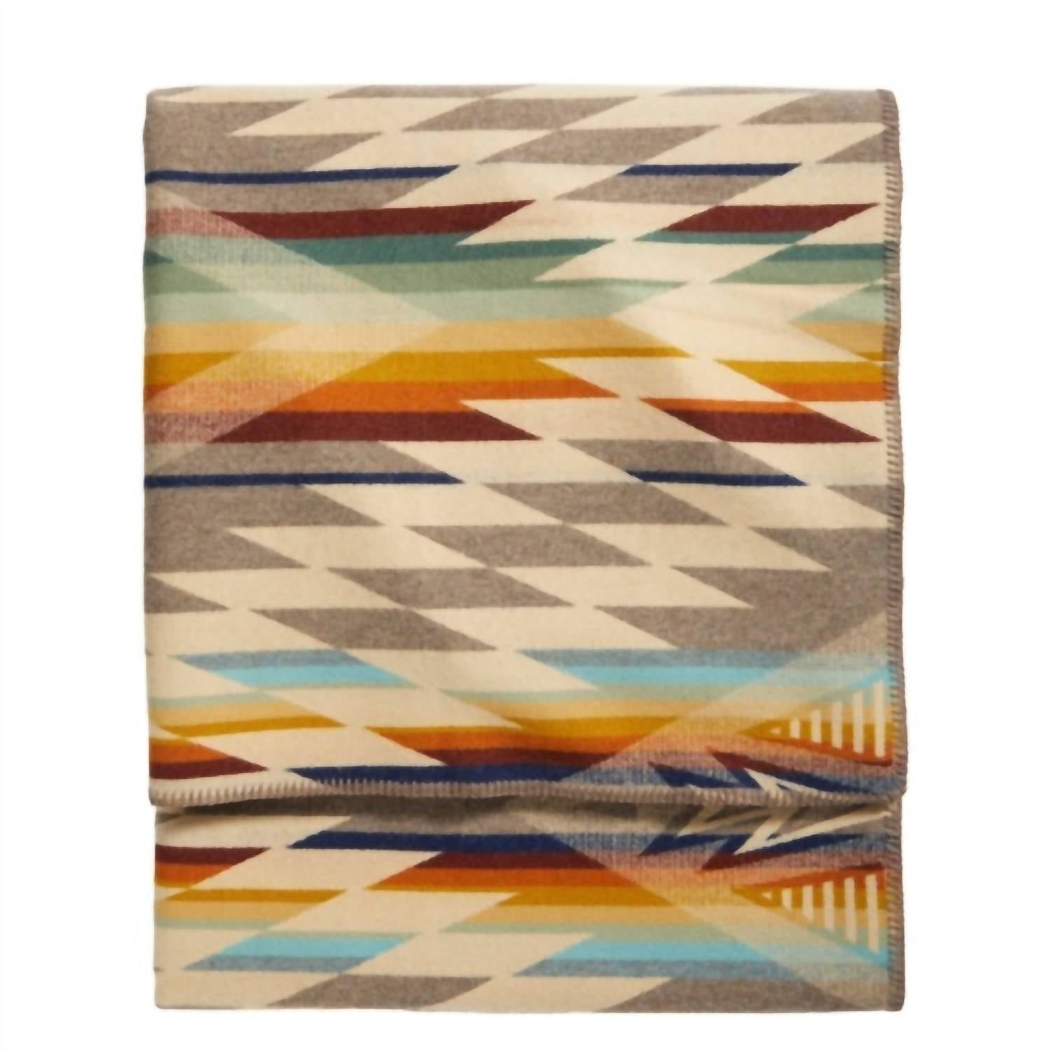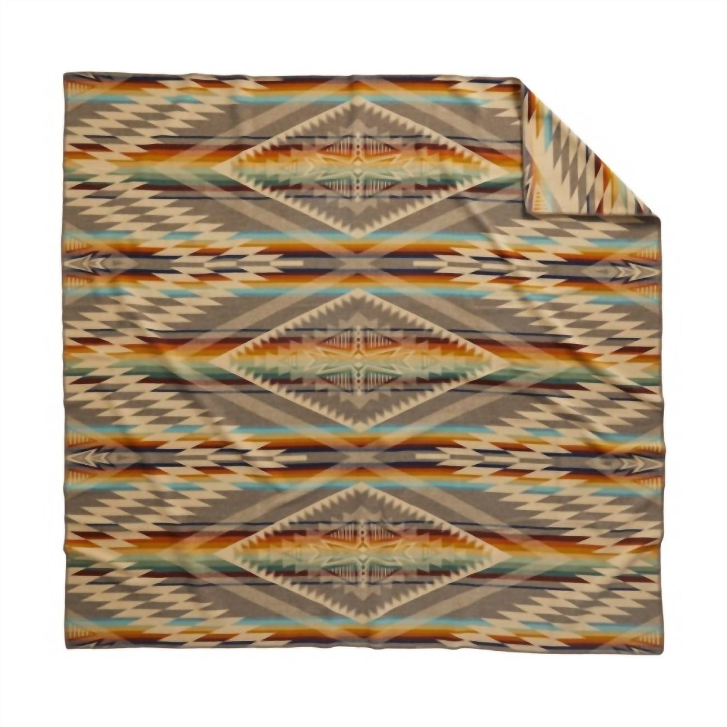 Experience the luxury of the Summerland Blanket by Pendleton in a stunning Taupe Multi color, crafted from a wool blend for ultimate warmth and comfort. Originating from Pendleton's American mills, this king-size blanket measures an expansive 108” x 90” and features versatile, dual-sided designs, accented with Ultrasuede® trim. It's made of pure virgin wool and cotton, promising a durable and classic addition to your home. Care instructions emphasize dry cleaning and laying flat to dry to maintain its exquisite quality.