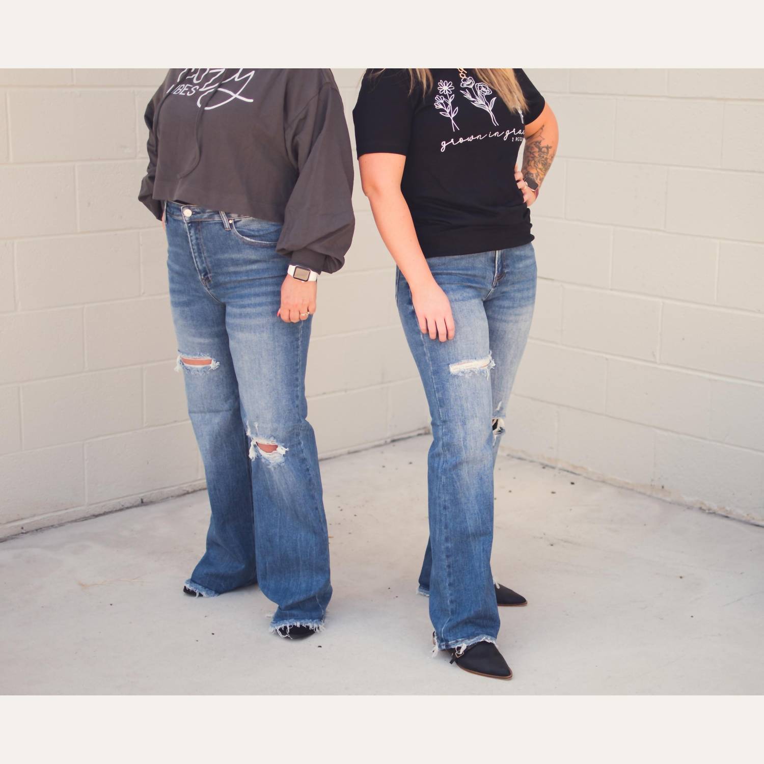 Discover the High Rise Ripped Wide Leg Jeans by Risen, designed to combine comfort and style in a trendy silhouette. These jeans come in a dark wash denim and feature a wide leg paired with a unique distressed design at the knee. Constructed with a blend of 91% cotton, 6% polyester, and 3% spandex, they ensure flexibility and durability. With a high-rise waistline of 10.5 inches and an inseam of 32.5 inches, these jeans provide a flattering fit. Complete with five practical pockets and a frayed hem, they secure with a button closure.
