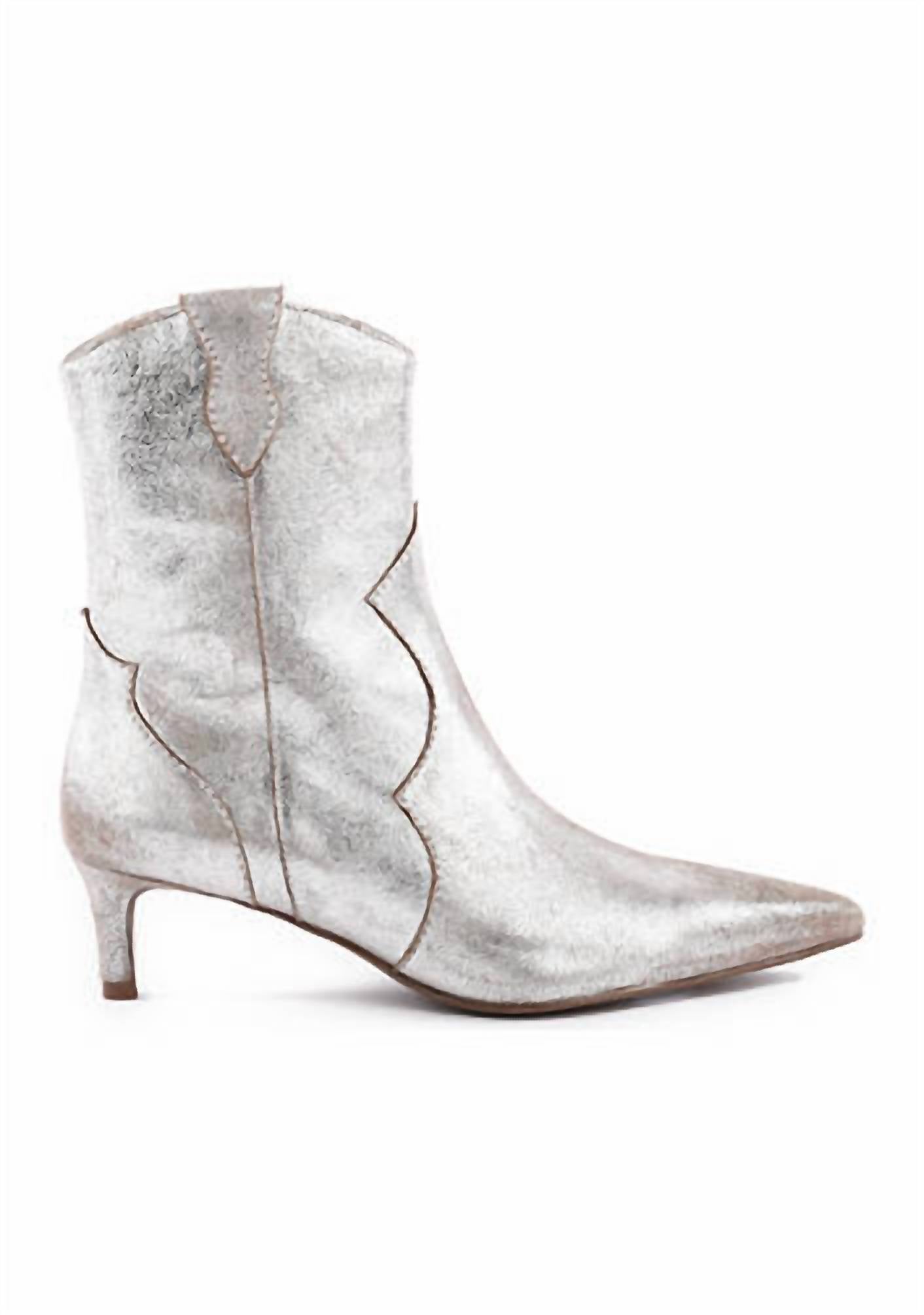 Introducing the Dallas Boots by Seychelles, an exquisite Western-inspired addition to your footwear collection in Distressed Pewter. These heeled boots feature a sleek silhouette with a tight fit at the ankle, dramatic pointed toe, and a modern 2" kitten heel. Crafted from luxurious suede with a synthetic lining and outsole, they boast classic yoke stitching, side pull tabs, and a convenient zip closure. Made with comfort technology and a padded insole, these boots offer a medium width and an 8" shaft height with a 10.5" calf circumference.