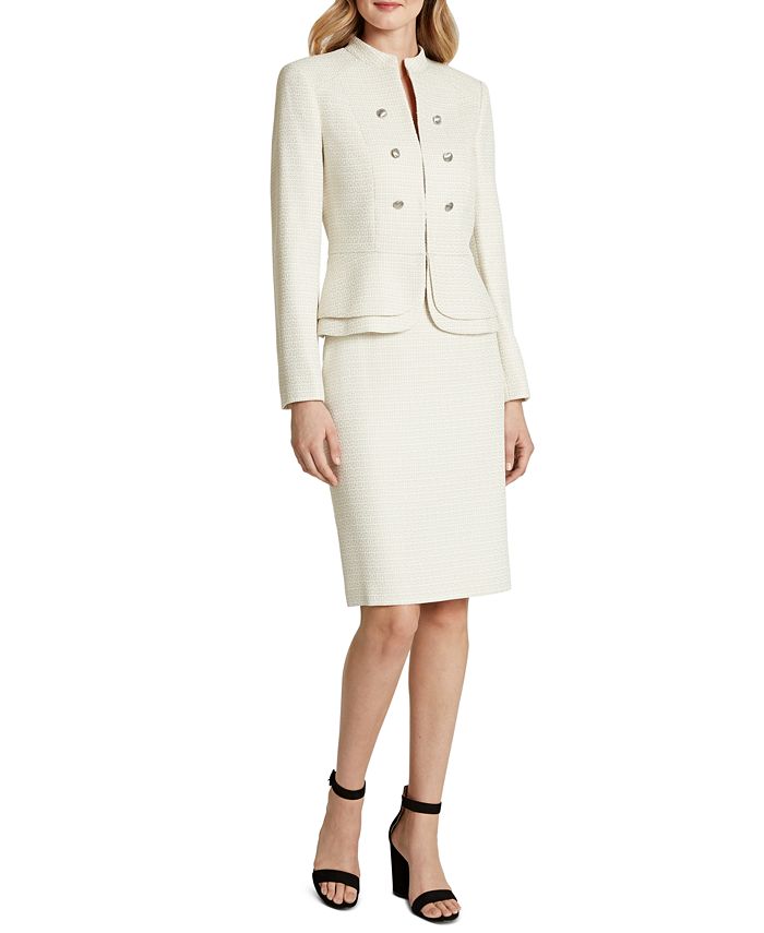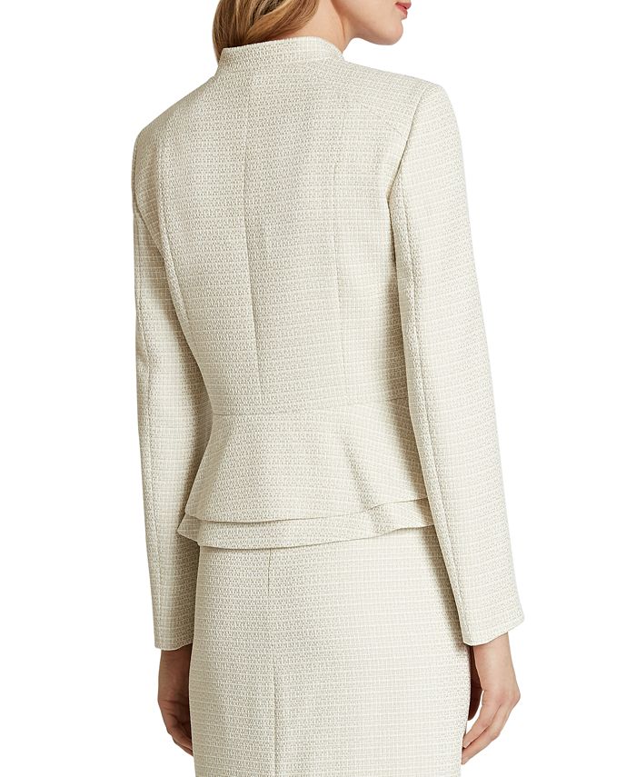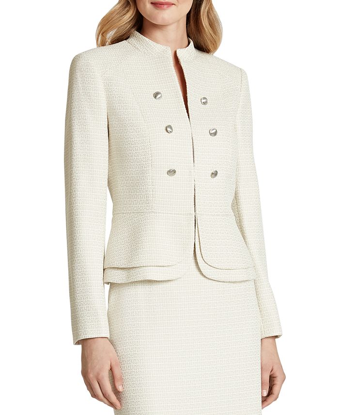 Add a splash of classic style to your workday look with this peplum hem blazer from Tahari ASL.| Approx. length; 21-1/2| Stand collar; hook and eye closure at front| Peplum hem; decorative buttons at front| Lined| Shell; polyester; lining; polyester/elastane
