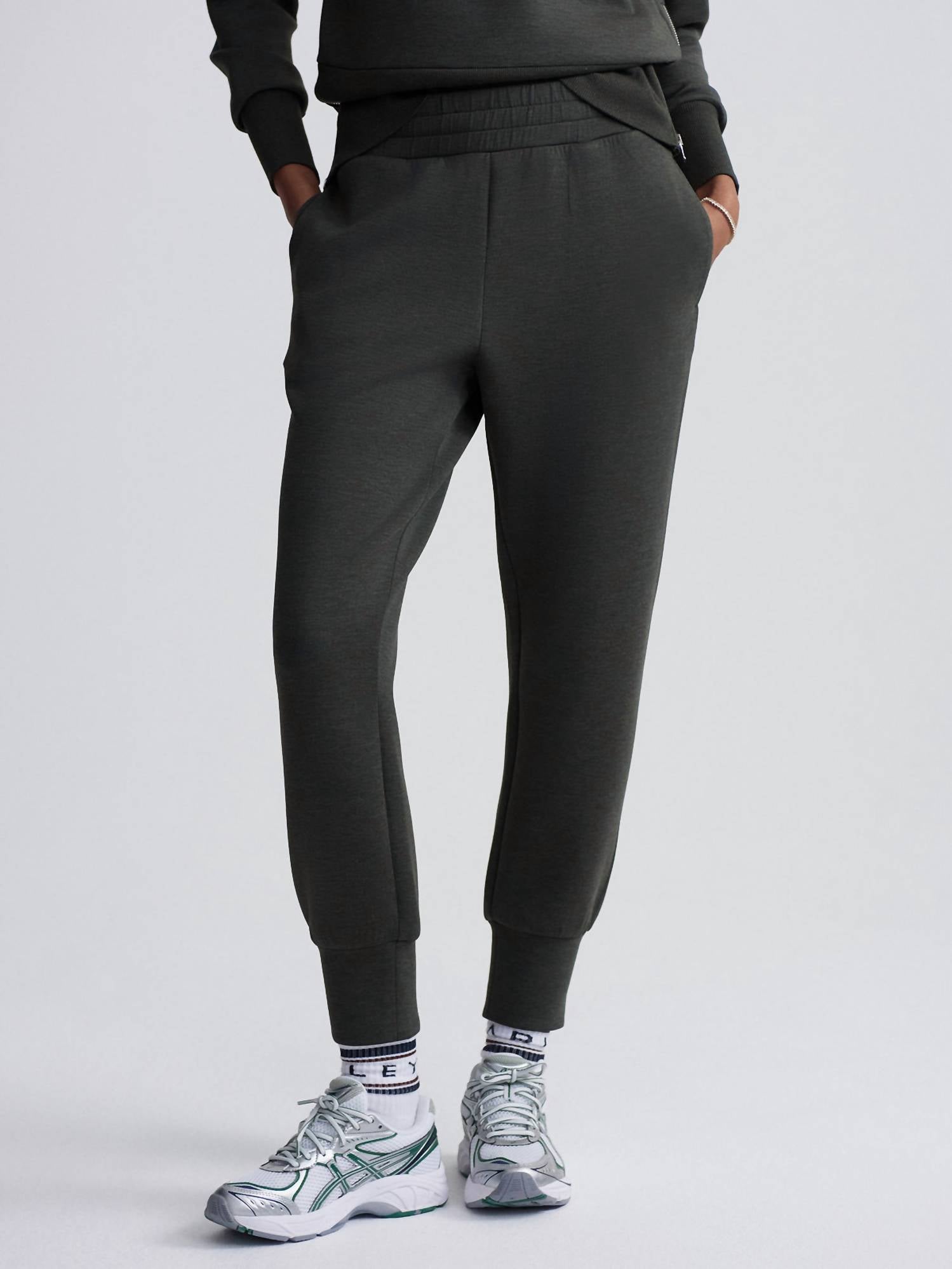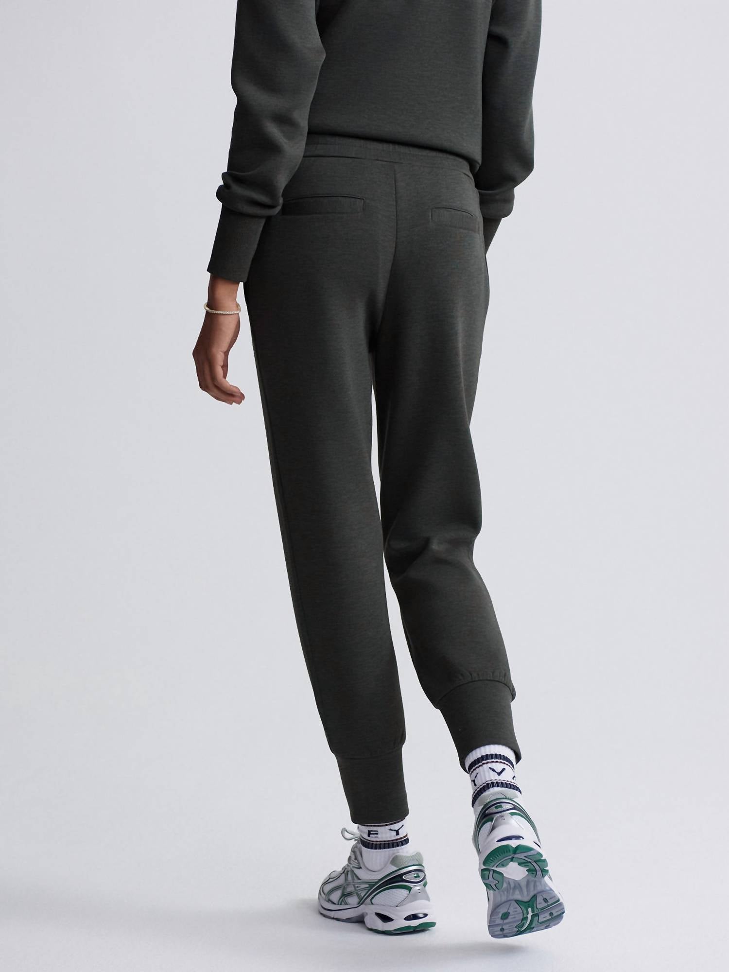 The perfect pant for running around town and looking cool while doing it. Elevate your everyday style with Varley's Slim Cuff Pant 25" in Olive Marl, expertly crafted from a luxurious Viscose Blend. These women's track pants feature a slim fit that flatters your figure and a pull-on closure for effortless wear. The cuffed hem and practical side and back pockets add sophistication and functionality to your wardrobe. For care, machine wash on a gentle cycle, lay flat to dry, and iron on low for lasting quality.
