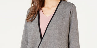 Alfani Women's Petite Drape-Front Cardigan Gray Size Petite X-Large