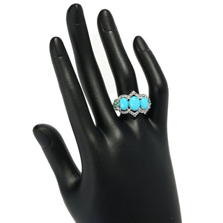 Gem Treasures Sleeping Beauty Turquoise, Emerald & White Zircon Ring