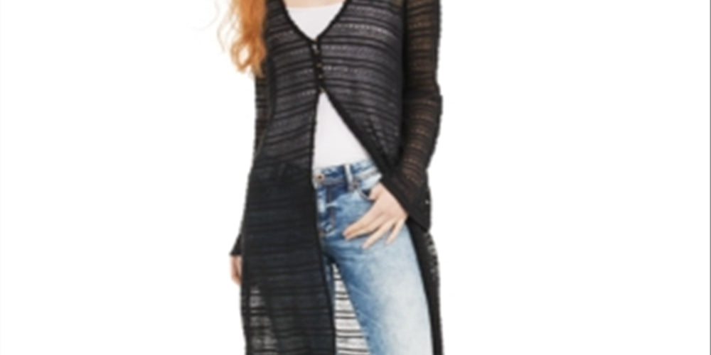American Rag Junior's Crochet TrimOpen Knit Duster Cardigan Classic Black Size M