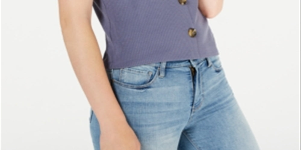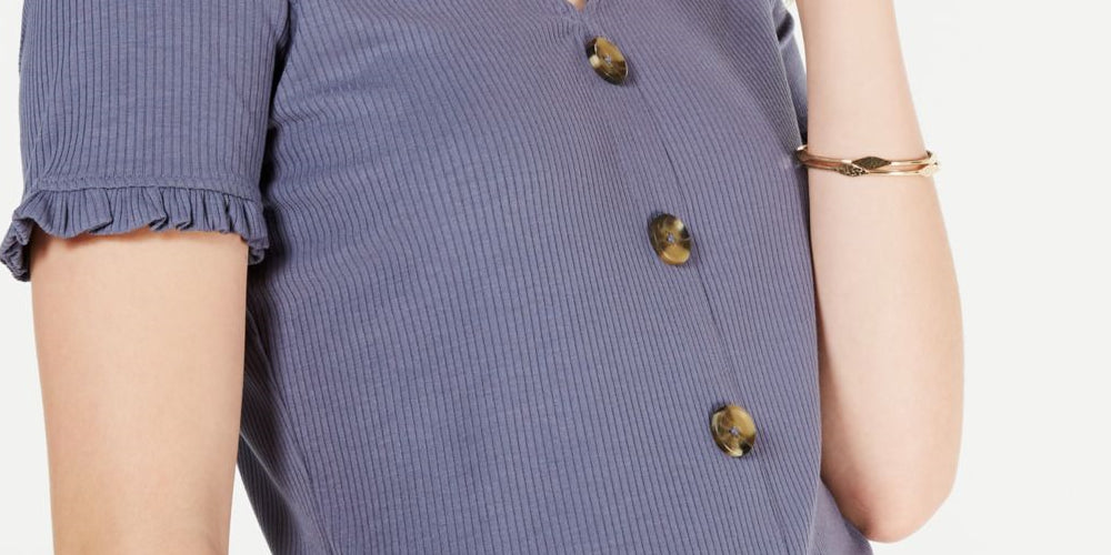 American Rag Women's Solid Short Sleeve V Neck Button up Party Top -Gray Size Small