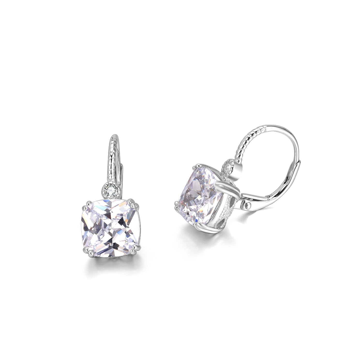 Sterling Silver & Genuine Square Crystal Leverback Earring