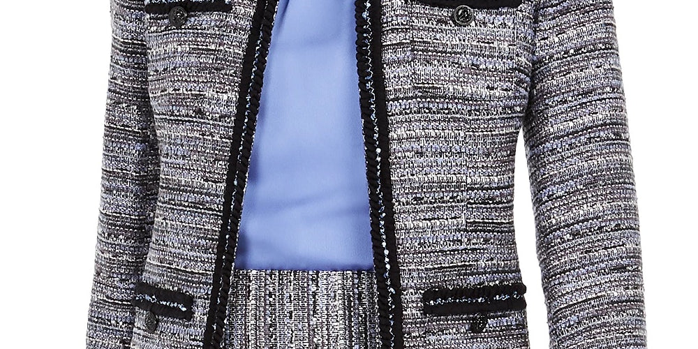 Anne Klein Women's Contrast Trim Tweed Jacket Dark Grey Size 6