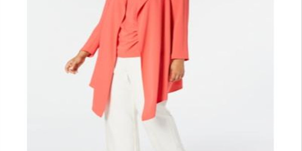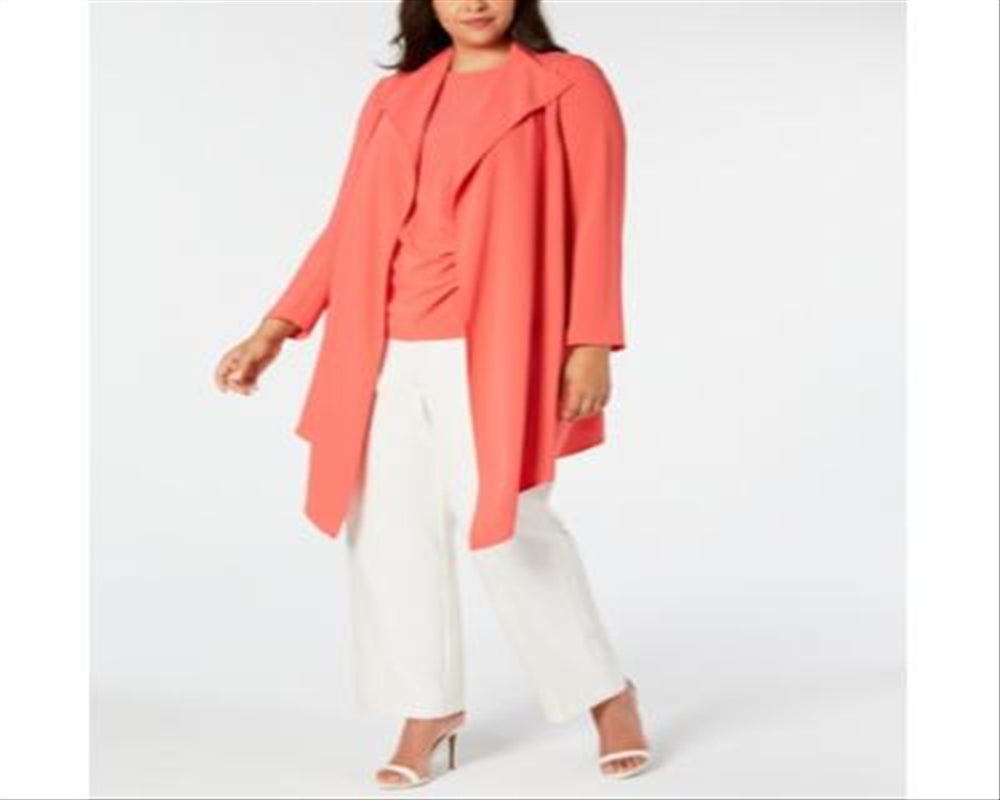 Anne Klein Women's Coral Long Sleeve Open Cardigan Sweater Orange Size 0X