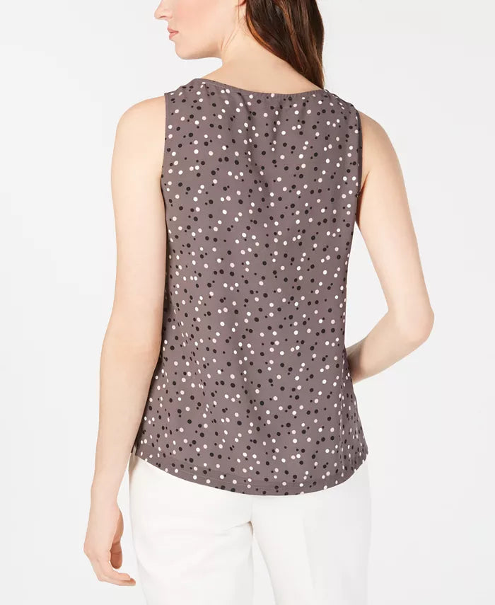 Anne Klein Women's Sleeveless Polka Dot Blouse Dark Gray Size Large