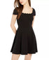 B Darlin Women's Black Low Back Scalloped-Trim Short Sleeve Square Neck Mini Fit + Flare Cocktail Dress Black 13-14