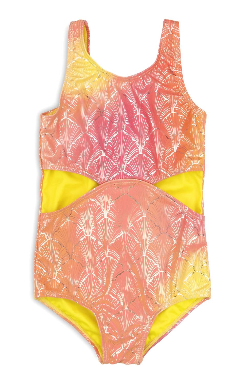 Let your little one embrace their inner mermaid with the Kid's Erika Swimsuit by Appaman in a delightful seashell pattern. This one-piece swimsuit features a scoop front and back with a trendy cutout detail at the waistline. Crafted from 85% Polyester and 15% Elastane with a 100% Polyester lining, it offers built-in UPF 50+ sun protection for those sunny beach days. Care for this vibrant swimwear by rinsing immediately after use, hand washing cold, and drip drying in the shade.