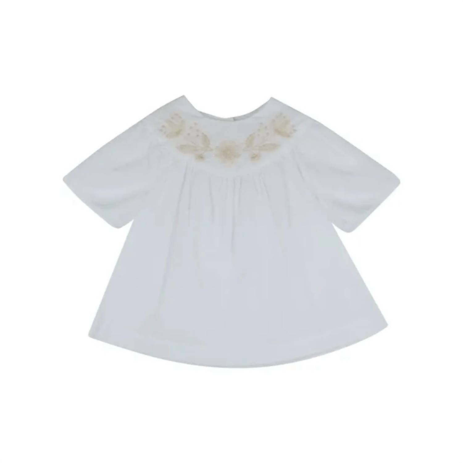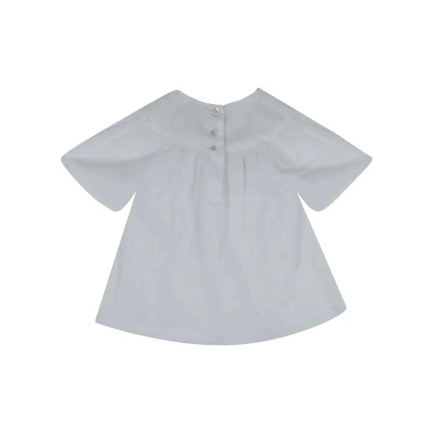 Introducing the Girls Luisa Mini Dress by Babe & Tess, a charming piece perfect for springtime adventures. This casual dress in a natural white color boasts exquisite floral embroidery, adding a touch of elegance to any vacation wardrobe. Crafted in Italy from 100% Cotton, it promises comfort and style for your little one. For easy care, machine wash and lay flat to dry, maintaining its minimalist beauty for seasons to come.