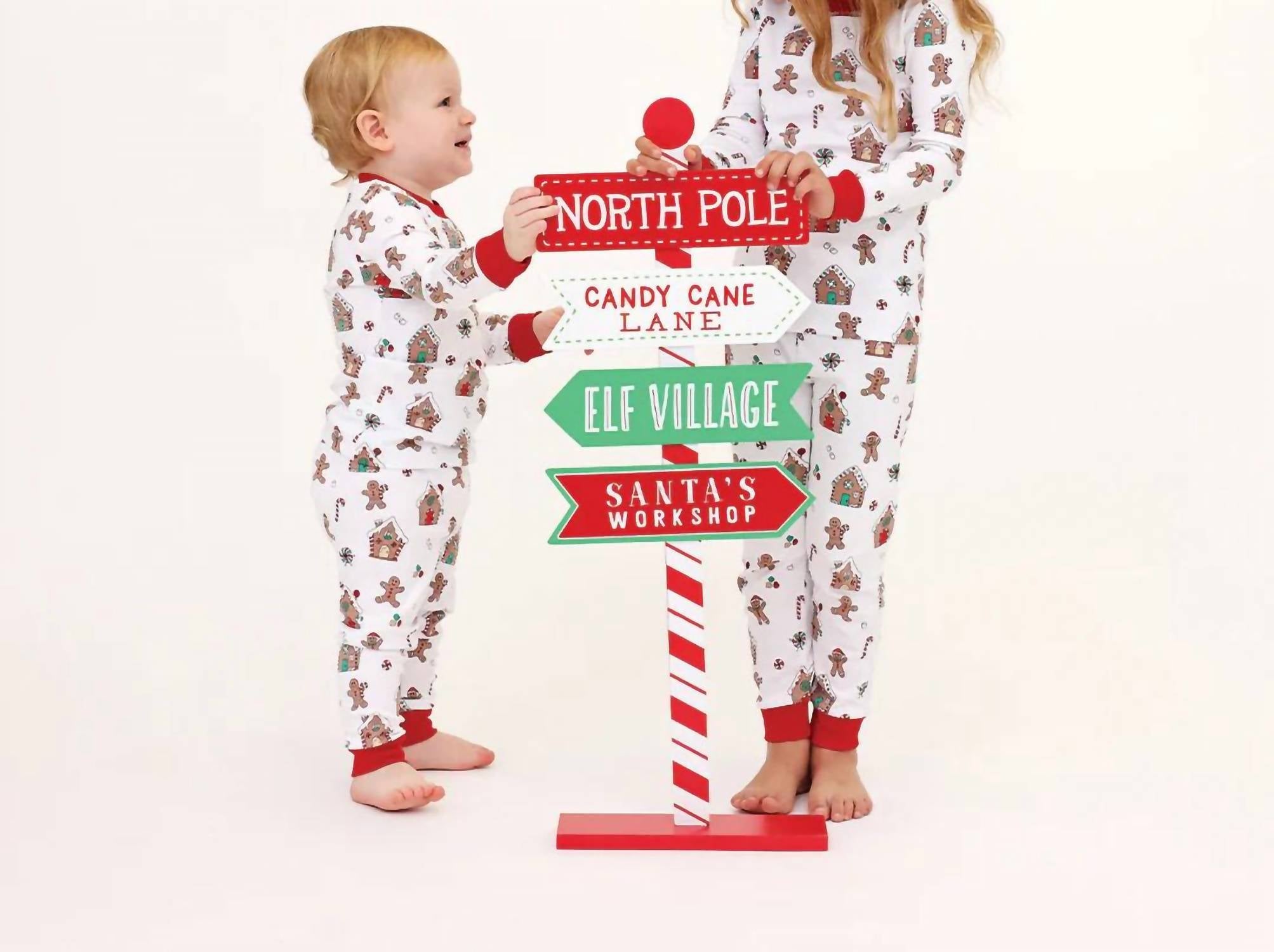 Celebrate Christmas with the Baby Noomie Toddler Gingerbread Holiday Pajama Set, featuring a charming holiday pattern of gingerbread cookies and candy canes. This comfortable two-piece set includes a long sleeve shirt and pants, crafted from 100% soft, breathable, hypoallergenic Pima cotton. Emphasizing a gender-neutral design, this pajama set coordinates perfectly with matching gingerbread kids' pajamas and dresses. Care: Hand wash and lay flat to dry for maximum longevity, ensuring festive memories last throughout the holiday season.