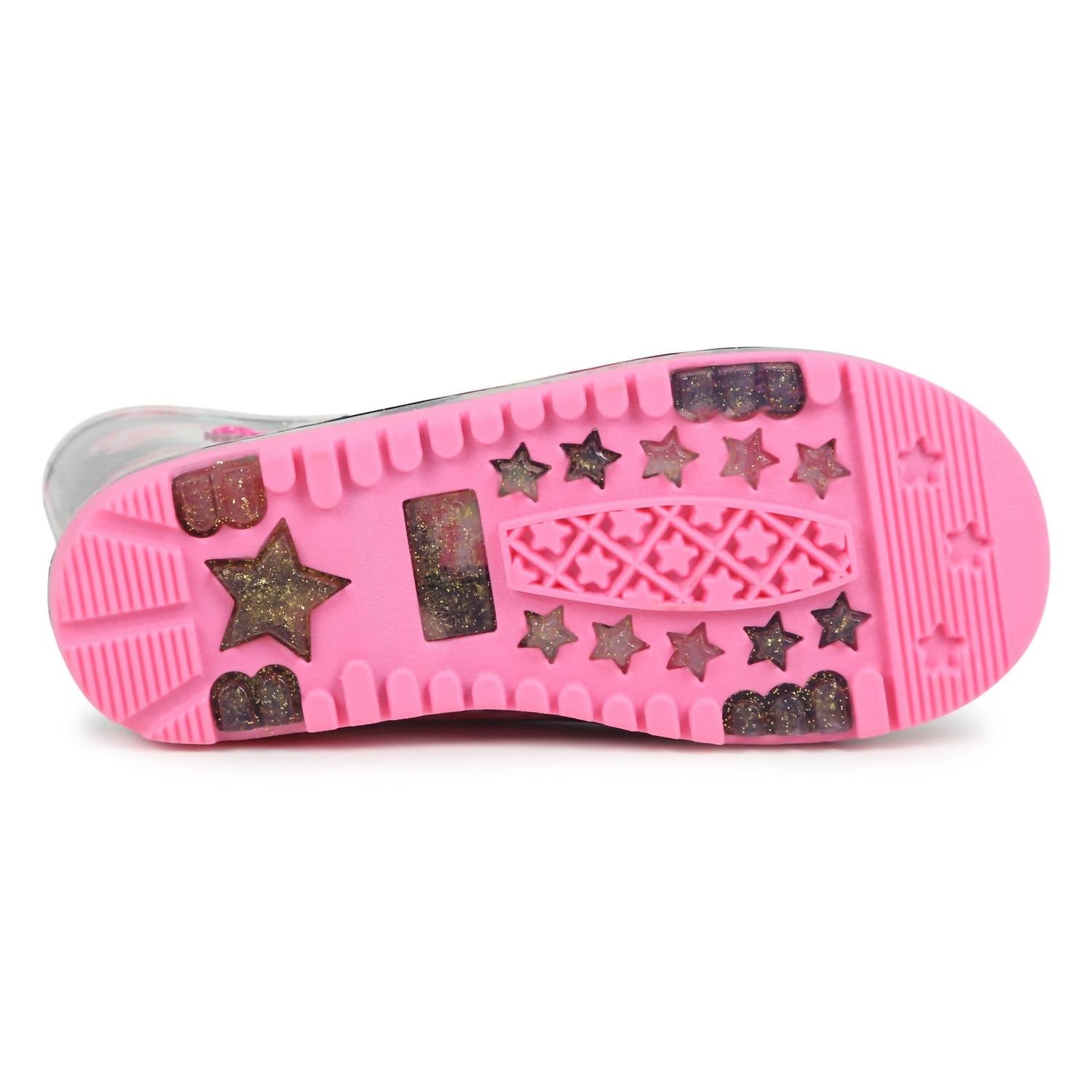Introducing the Unicorn Rainboots by Billieblush, crafted for girls who love to shine in playful style. These navy blue rain boots feature a charming pattern of pink, white, and green unicorns, complete with a vibrant pink logo on the side. Designed for durability and comfort, they boast a soft textile lining, a padded removable insole, and a non-slip pink sole, ensuring a secure grip in wet conditions. Composition includes 100% synthetic outer and outsole, with 100% textile lining.