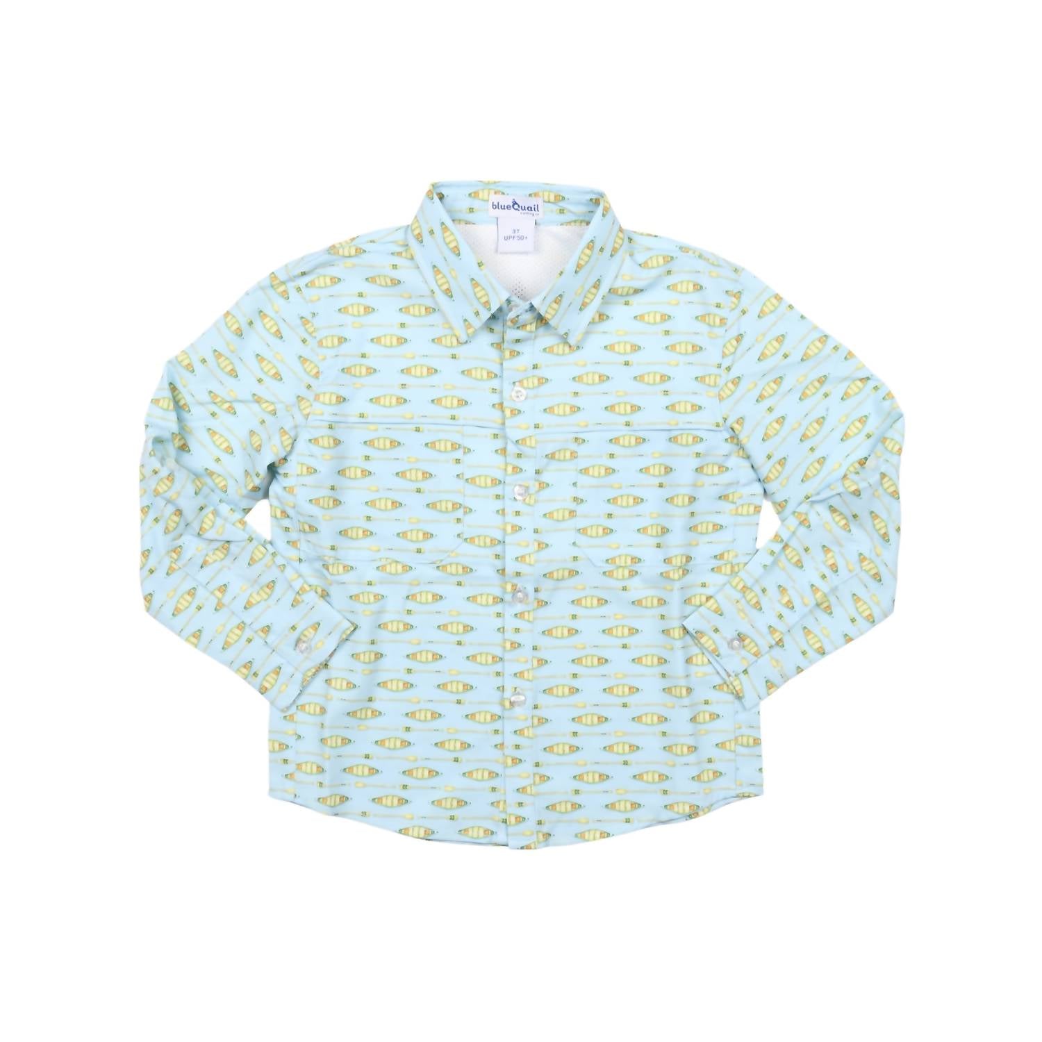 Meet Bopy's Everyday Shirt by Blue Quail Clothing Co., a must-have for boys' summer wardrobes. This button down shirt in a cool blue hue is designed with a playful pattern, perfect for streetwear or vacation outings. While specific care instructions are not provided, the quality construction suggests durability for everyday adventures. An ideal choice to keep your little ones stylish during sunny days.