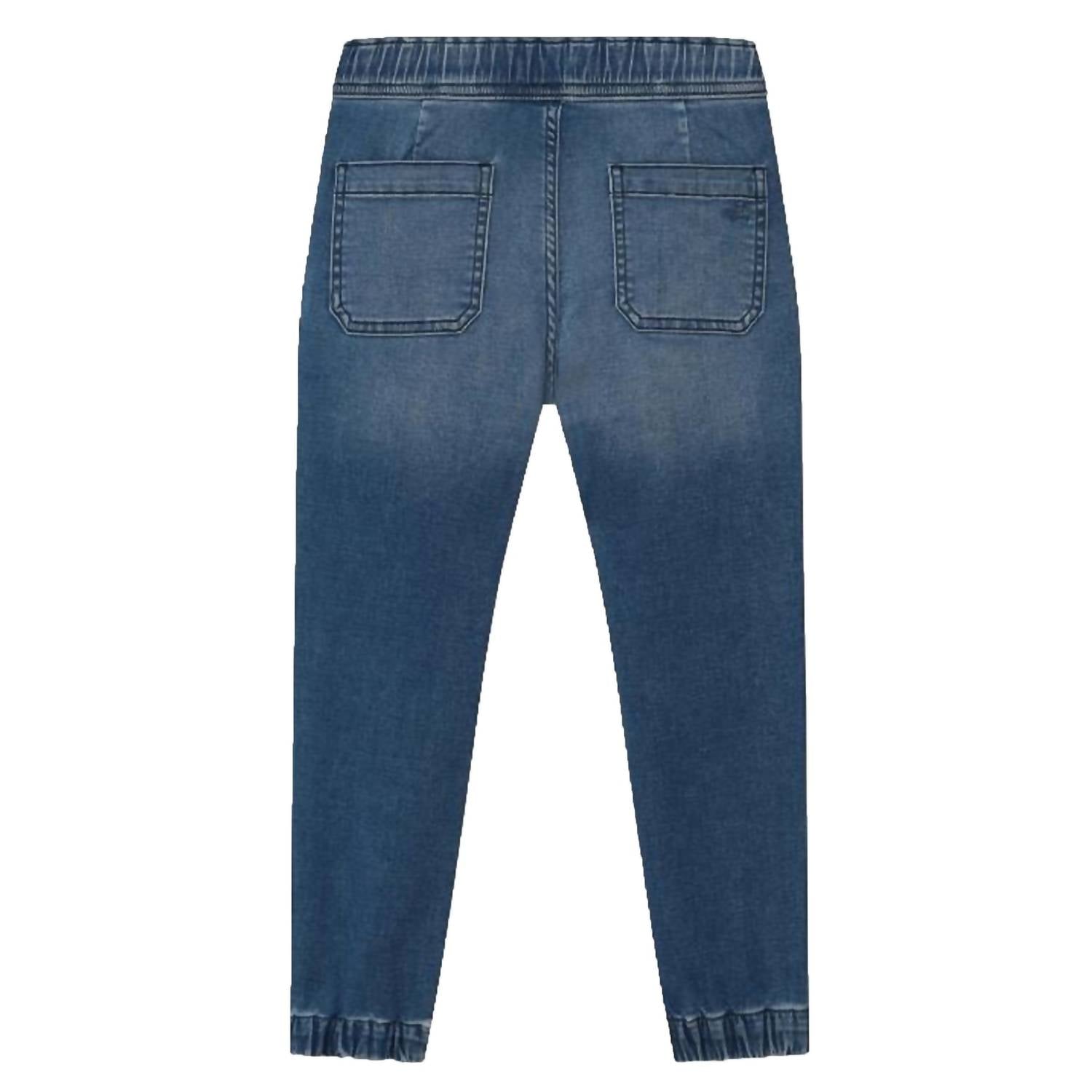 These relaxed, jogger-inspired pants feature an elastic waist and hem for a sporty, casual look. They include a zip fly closure and patch pockets on both the front and back, with tonal stitching and brushed silver hardware. The elastic waistband and hem provide a comfortable, adjustable fit.
