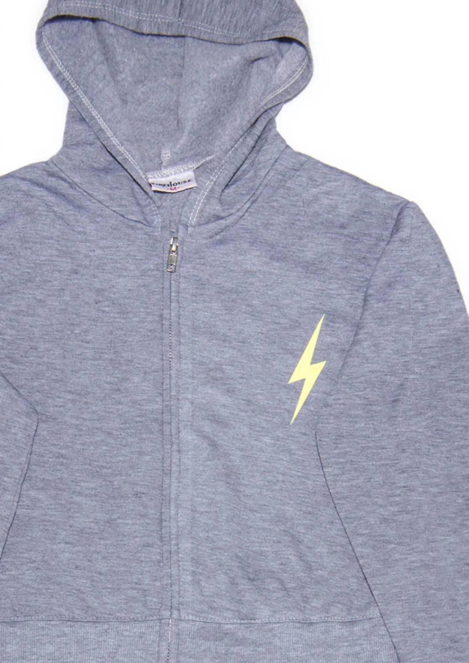 Elevate your girl's streetwear style with the Firehouse Neon Yellow Bolt Zip Hoodie, a standout piece in a cool grey hue. Featuring long sleeves and crafted with a solid pattern, this hoodie brings a touch of boldness with its neon bolt design. Made for easy wear, it features a convenient zip closure. Ensure lasting vibrancy with machine wash and tumble dry care, perfect for spring outings.