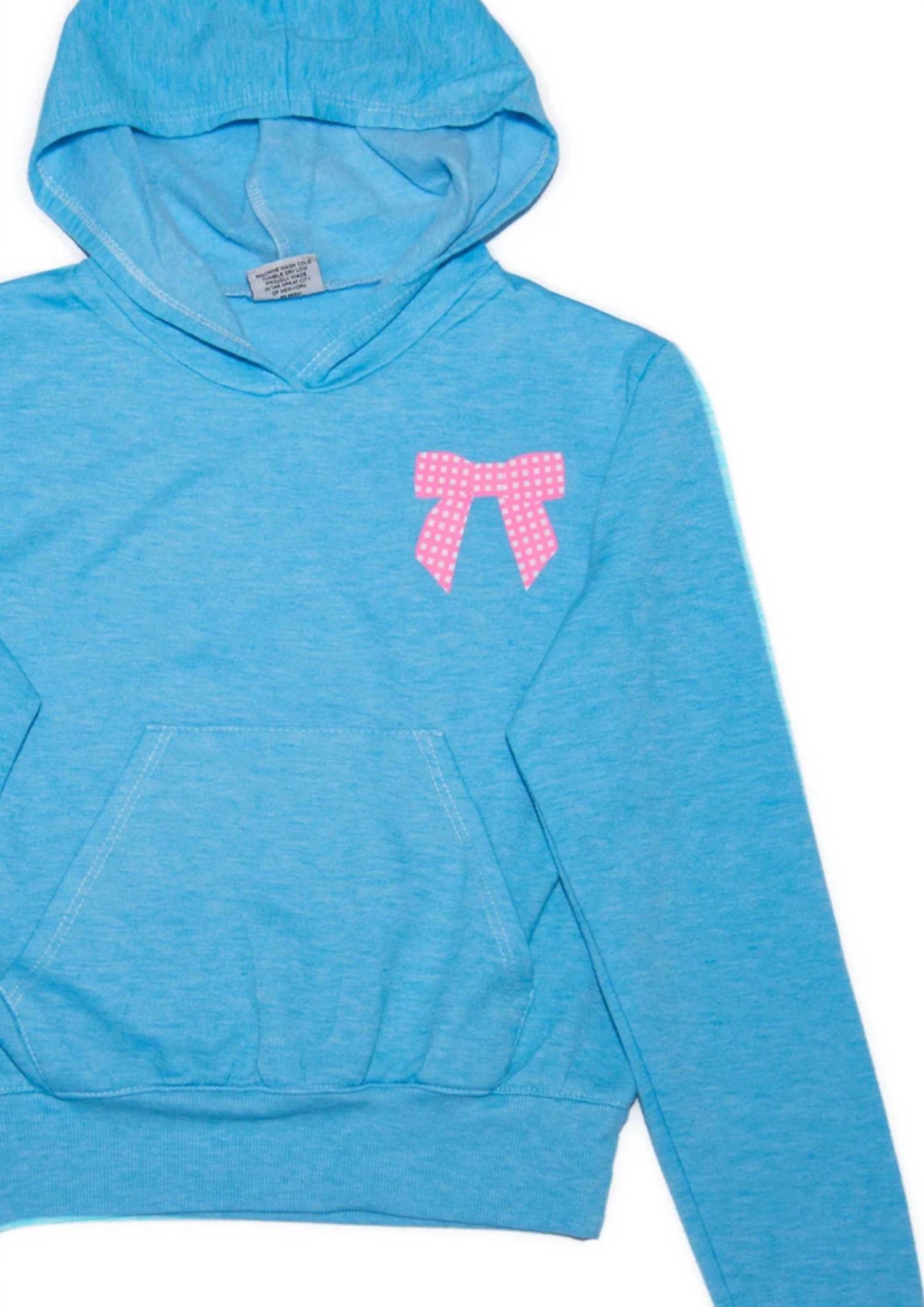 Introducing the Girl's Pink Gingham Bow Hoodie by Firehouse, designed to add charm to her wardrobe with delightful pink gingham bow accents. Crafted from soft cotton, this aqua hoodie is perfect for layering on cool mornings or breezy nights, offering a playful graphic pattern that elevates everyday style. Ideal for spring streetwear and back-to-school occasions, this hoodie makes a great choice for Hanukkah celebrations. Care: Machine wash and tumble dry for easy maintenance.