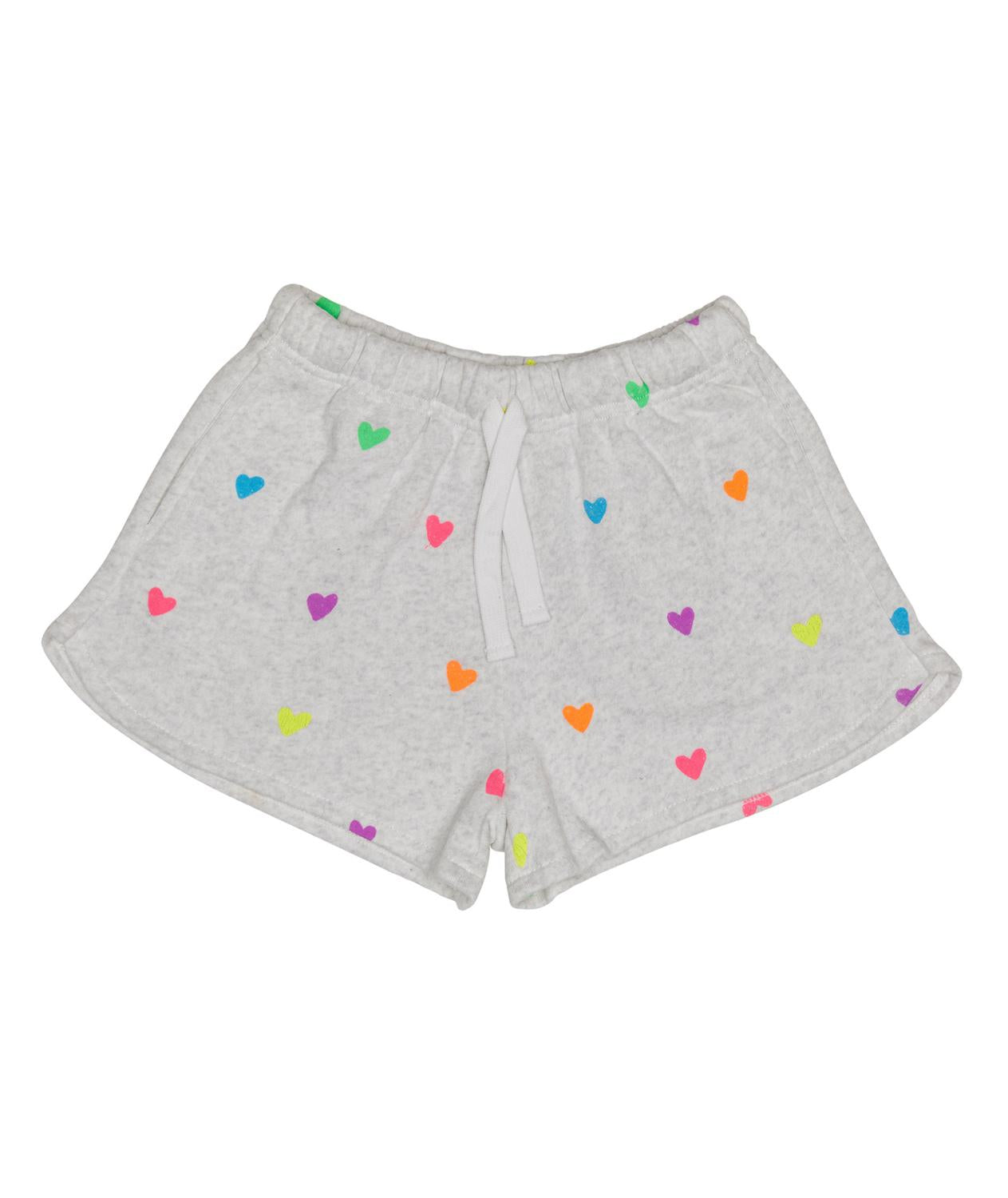 Introducing the Girl's Betsy All Over Hearts Shorts by Flowers by Zoe, crafted from soft cotton for ultimate comfort. These shorts feature a playful all-over heart pattern in a vibrant multi-color design, perfect for adding a touch of sweetness to any summer day. Originating from an unspecified location, they cater to preppy Hanukkah celebrations and casual housewarming gatherings alike. Care is simple with machine wash and tumble dry instructions, making them an easy choice for the busy lifestyle of a young trendsetter.