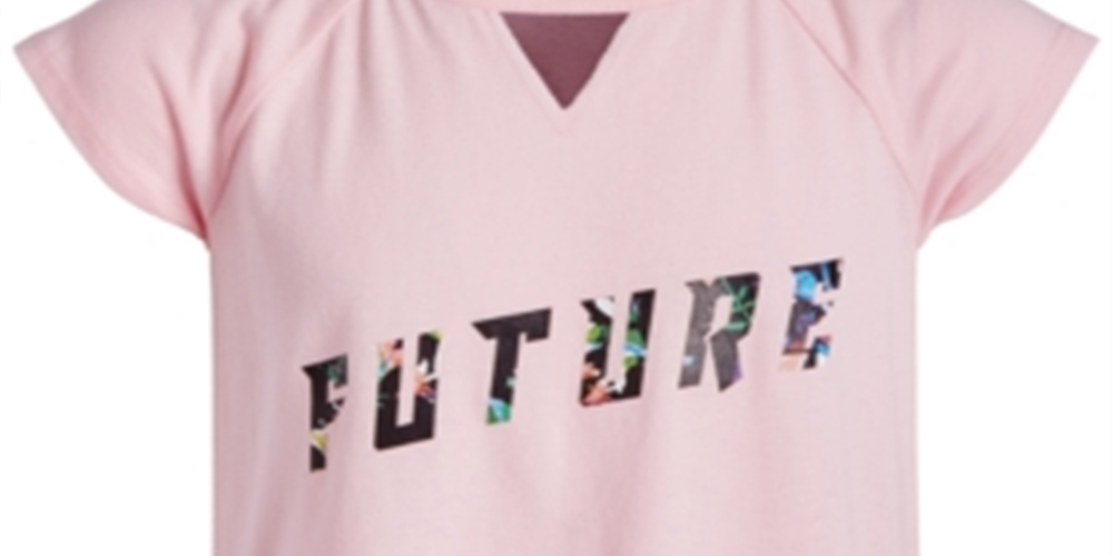 Ideology Big Girl's Keyhole Cutout Graphic Print T-Shirt Pink Size Medium