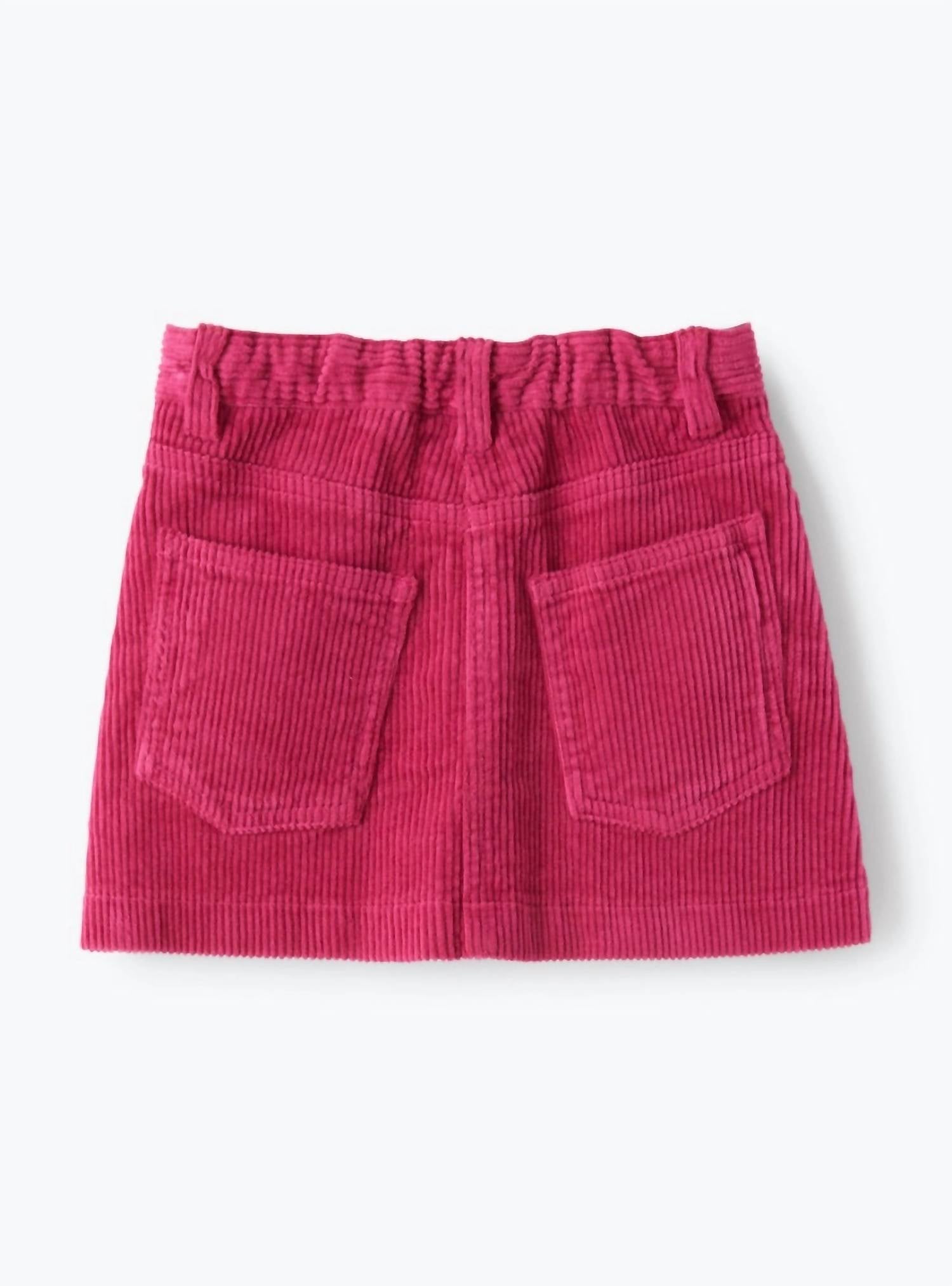 Add a vibrant touch to your tween's wardrobe with the Il Gufo Girl's Beet 5 Pocket Skirt. Expertly crafted from fuchsia-pink stretch corduroy, this flared skirt boasts a textured pattern with thoughtful details including a zip fastening, side button feature, and handy belt loops at the waist. With functional pockets on both sides and small patch pockets on the back, this skirt seamlessly combines style with practicality.