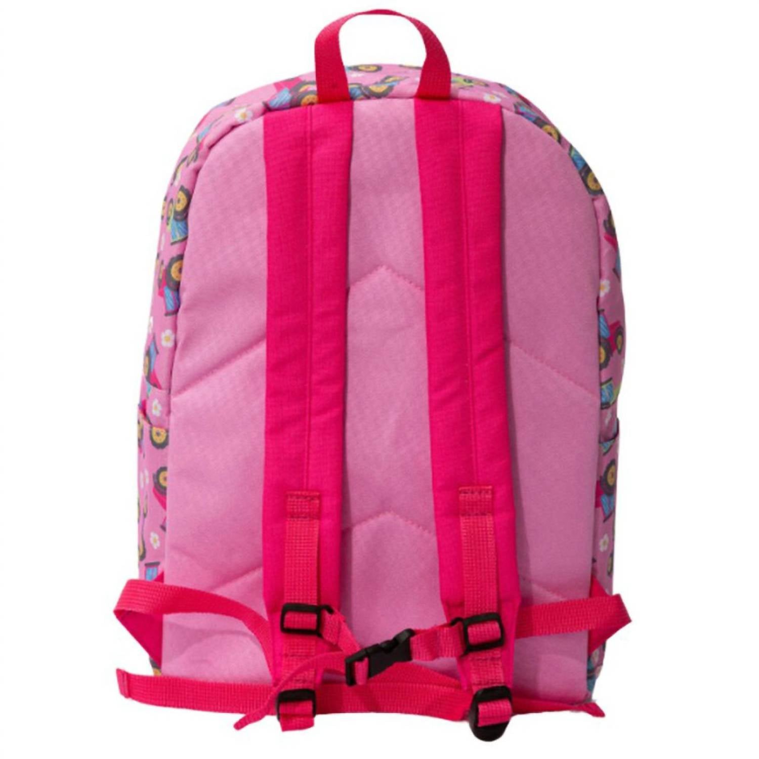 Introducing the Girl's Hay Day Backpack by Jane Marie, designed for those who value both style and practicality. Crafted from water-resistant canvas, this pink multi backpack offers a spacious main compartment with a dual zip closure and an interior slip pocket ideal for a tablet. It includes a front pocket with a zip closure, two side pockets, adjustable straps, a center adjustable chest strap on the back, and a top carry handle for versatility. Dimension: 11" L x 5.5" W x 16" H.