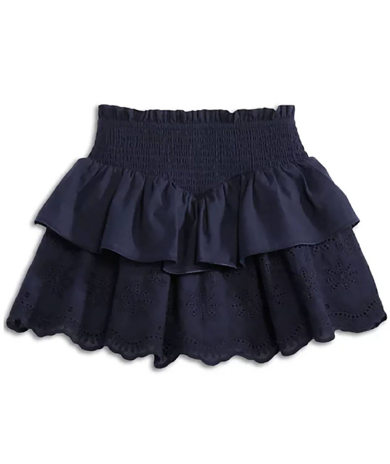 Elevate your style with the Girl's Faye Eyelet Smock Skirt by Katie J NYC, a delightful addition to any wardrobe. Crafted from cozy cotton, this navy skirt features charming eyelet accents that exude boho chic vibes. The elastic waistband ensures all-day comfort, making it perfect for summer occasions like birthdays and Thanksgiving. Care is a breeze with machine wash and tumble dry instructions.