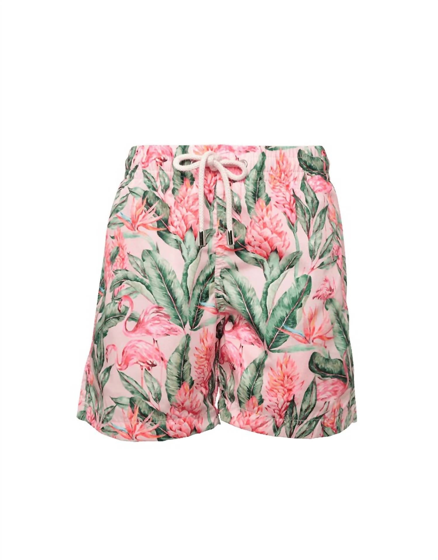 Crafted in Italy from 100% recycled Italian polyester, these shorts offer an ultra-light fabric that dries swiftly for maximum comfort. They feature an elastic waistband with a drawstring closure, side pockets, and a back pocket with a Velcro flap along with two back eyelets for extra functionality. Enjoy family matching prints with coordinating swimwear for everyone.