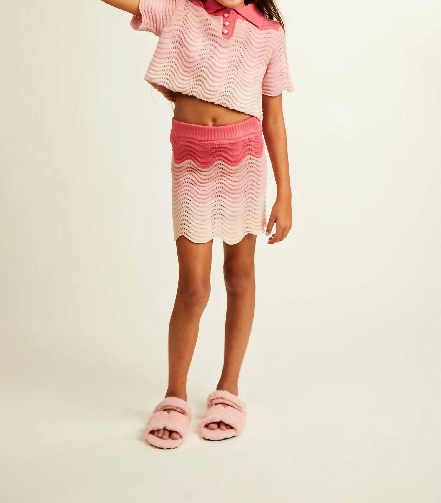 Introducing the Portofino Crochet Set by Mini Dreamers, a stylish matching set perfect for chic summertime outfits. This pink two-piece comprises a cropped top and skirt, both crafted from a vintage-inspired crochet fabric that's soft and trending. Designed with a slightly loose fit, we recommend sizing down if you're between sizes.